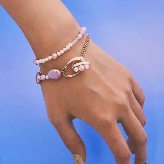 多重宇宙 時空旅行薰衣草色巴洛克珍珠手鍊-厚鍍玫瑰金