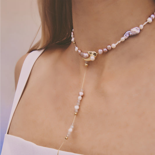 多重宇宙 時空旅行薰衣草色巴洛克珍珠短鍊-厚鍍18K金
