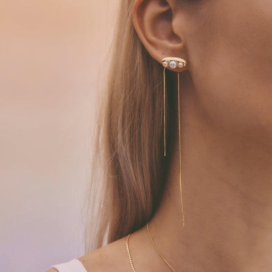 多重宇宙 時空旅行珍珠長耳線-純銀