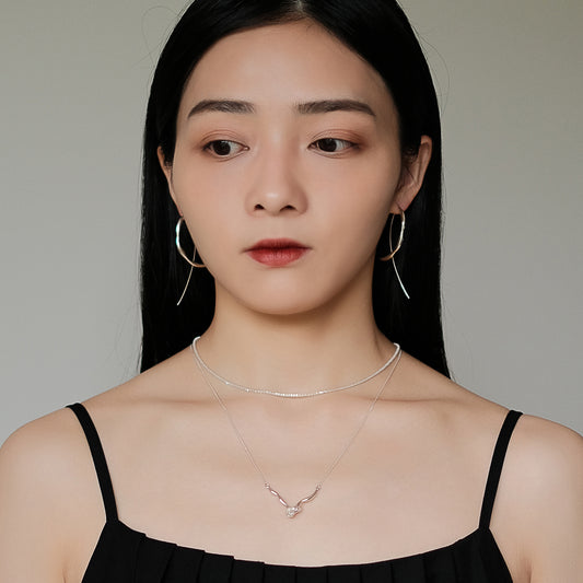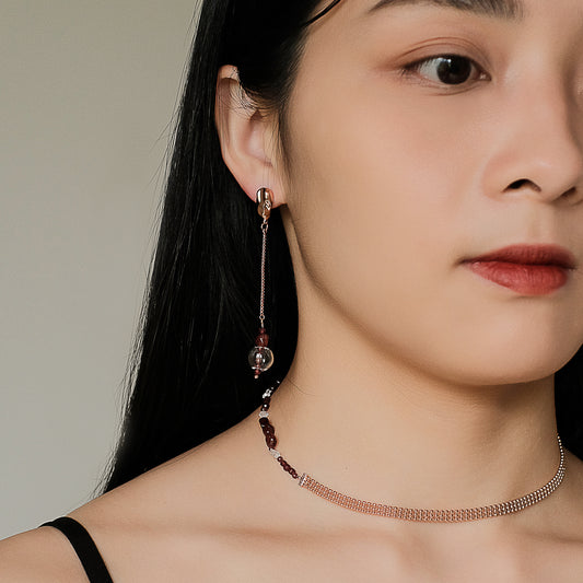 宇宙冰晶 胭紅薄霧 冰晶垂墜耳鍊-厚鍍玫瑰金