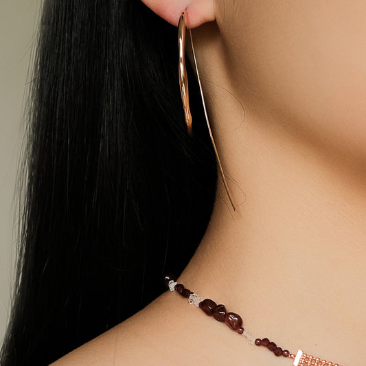 宇宙冰晶 胭紅薄霧 暴風簡約耳環-厚鍍玫瑰金