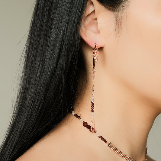 宇宙冰晶 胭紅薄霧 冰晶珠鍊垂墜耳環-厚鍍玫瑰金