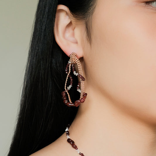 宇宙冰晶 胭紅薄霧 冰晶石榴石垂墜耳環-玫瑰金
