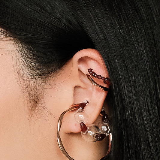 宇宙冰晶 胭紅薄霧 氣泡大耳夾-厚鍍玫瑰金