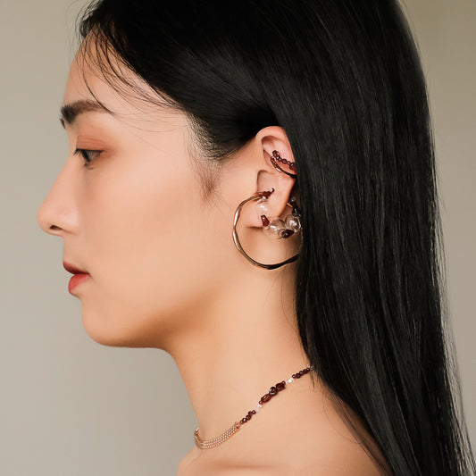 宇宙冰晶 胭紅薄霧 串珠小耳夾-厚鍍玫瑰金
