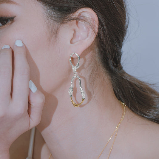 宇宙冰晶 冰晶垂墜耳環-厚鍍金銀雙色 (L)