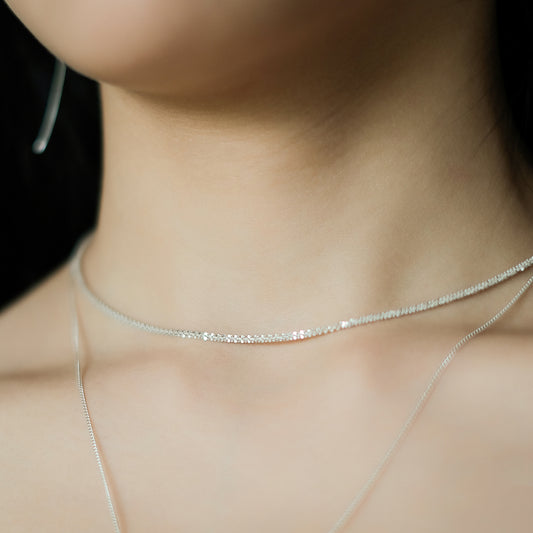 宇宙冰晶 胭紅薄霧 雪花素短鍊-純銀 / 純銀厚鍍18K金