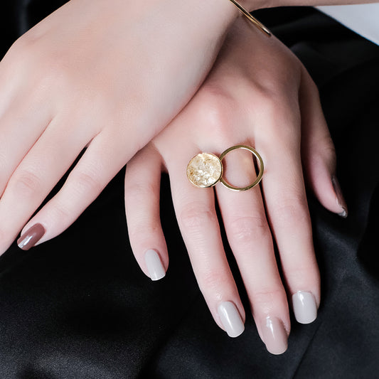 氣泡星雲 雙圈蛋白石戒-純銀厚鍍18K金