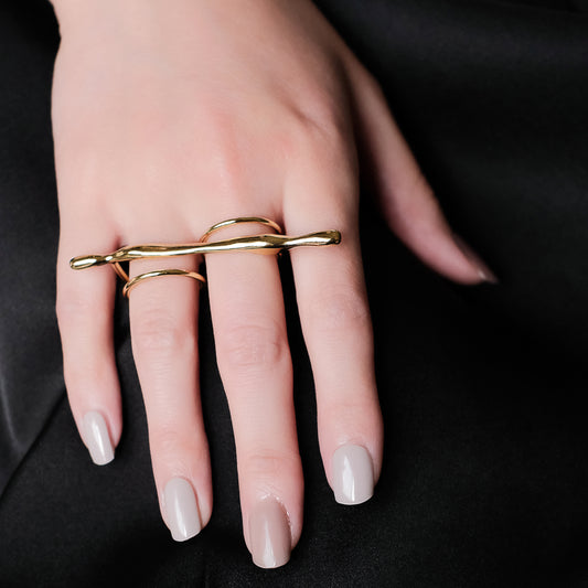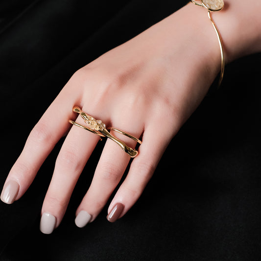 多重宇宙 流動小珍珠戒指-厚鍍18K金