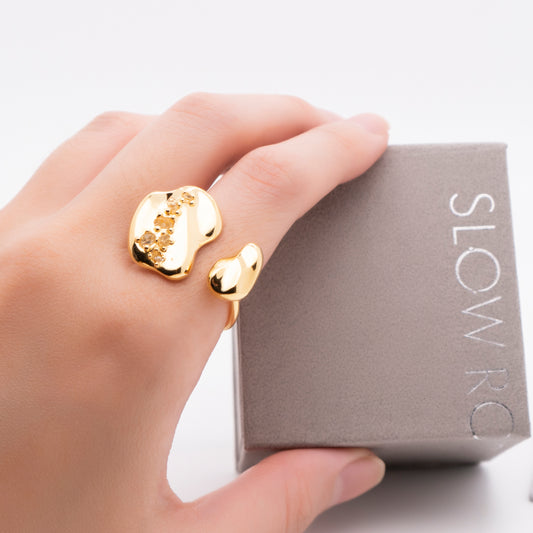 宇宙冰晶 冰晶波紋開口戒-厚鍍18K金