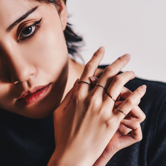 月圓圓缺雙色細戒-18K玫瑰金+白金色