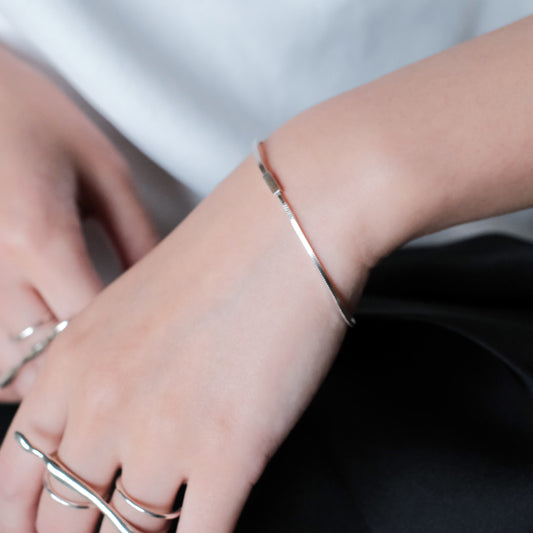 宇宙冰晶 胭紅薄霧 簡約方蛇鍊手環-純銀