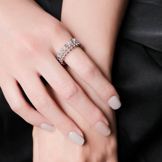宇宙冰晶 胭紅薄霧 冰晶堇青石雙圈珠鍊戒指-厚鍍白K金