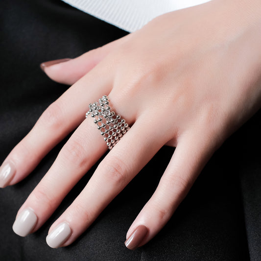 宇宙冰晶 珠鍊雙圈戒指-厚鍍白K金