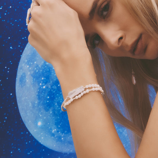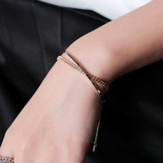 宇宙冰晶 胭紅薄霧 雙色珠鍊手環-厚鍍玫瑰金+白K金