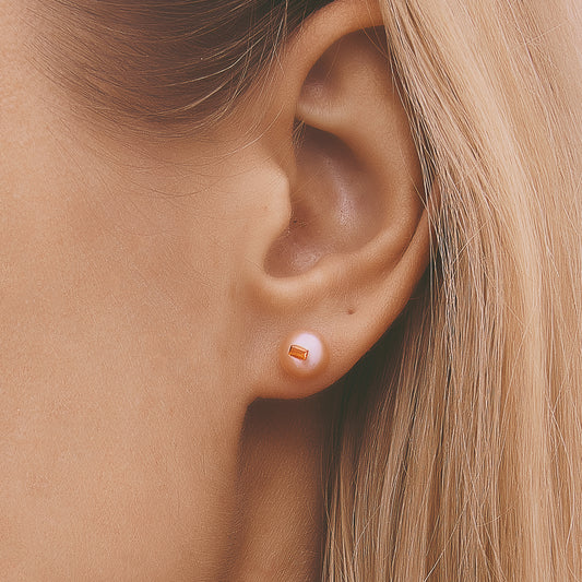 多重宇宙 簡約鋯石7mm粉珍珠耳環-橘紅色