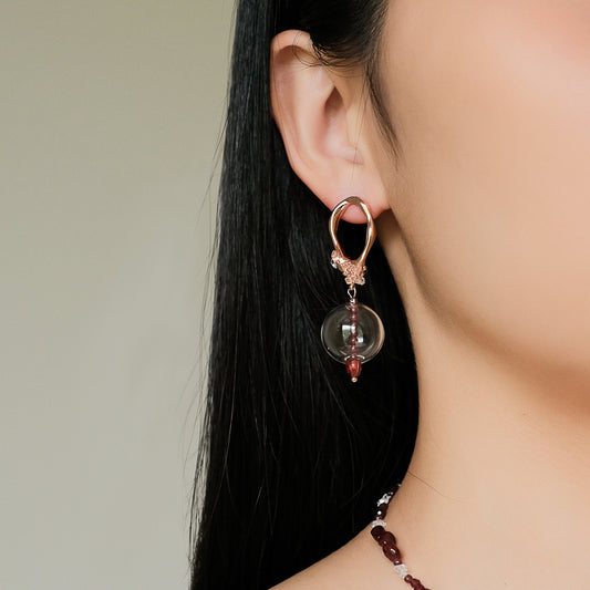 宇宙冰晶 胭紅薄霧 氣泡冰晶垂墜耳環-厚鍍玫瑰金