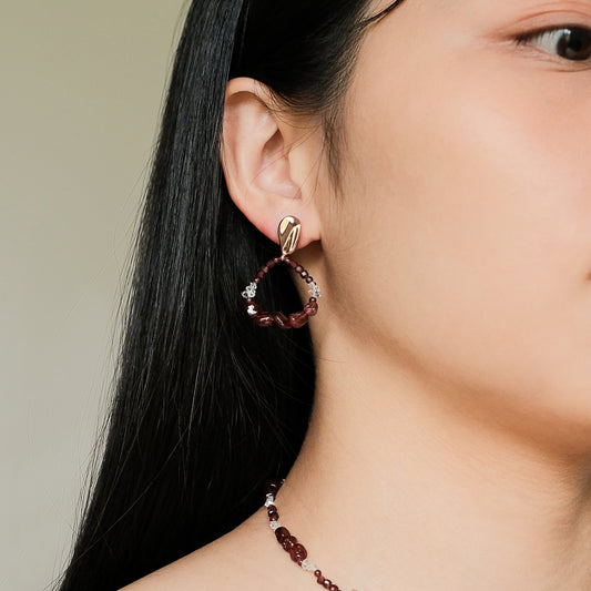 宇宙冰晶 胭紅薄霧 冰晶石榴石垂墜耳環-玫瑰金