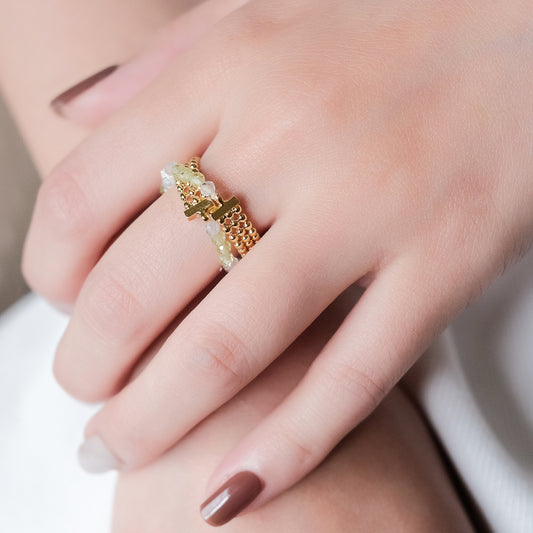 宇宙冰晶 胭紅薄霧 冰晶橄欖石雙圈珠鍊戒指-厚鍍18K金