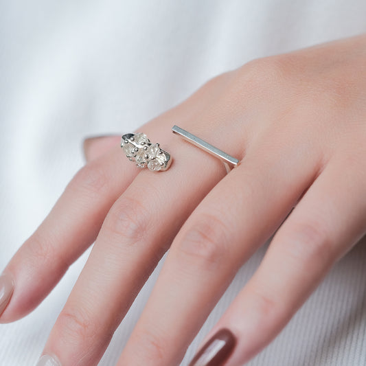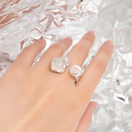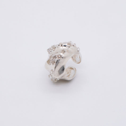 宇宙冰晶 冰晶波紋開口戒-純銀