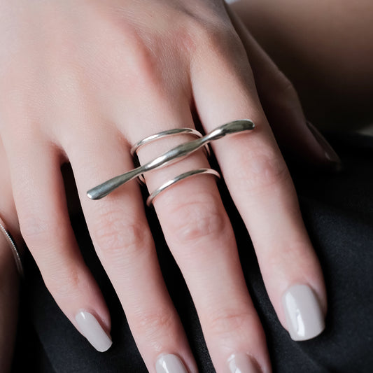 宇宙冰晶 胭紅薄霧 暴風雙指戒-純銀