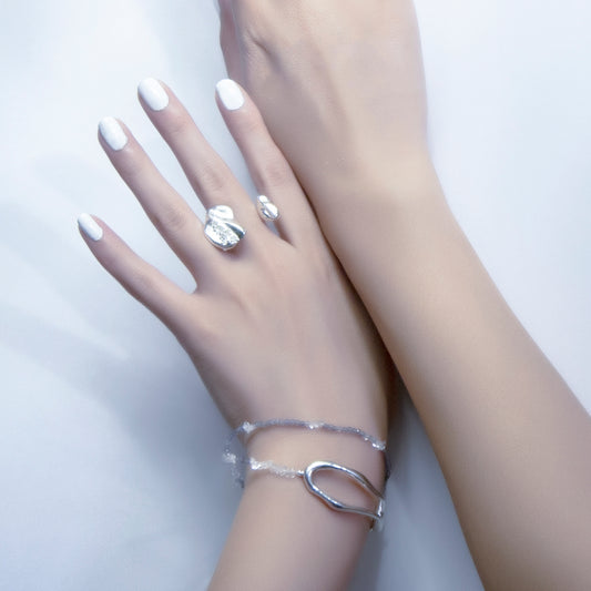 宇宙冰晶 冰晶波紋開口手環-純銀