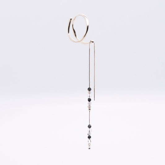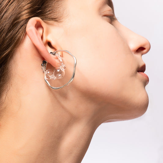 氣泡星雲 雙圈耳夾+串珠耳線-純銀