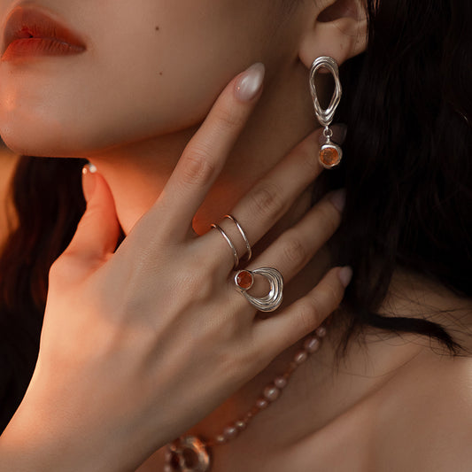 太陽閃焰 日珥太陽石雙指戒-純銀