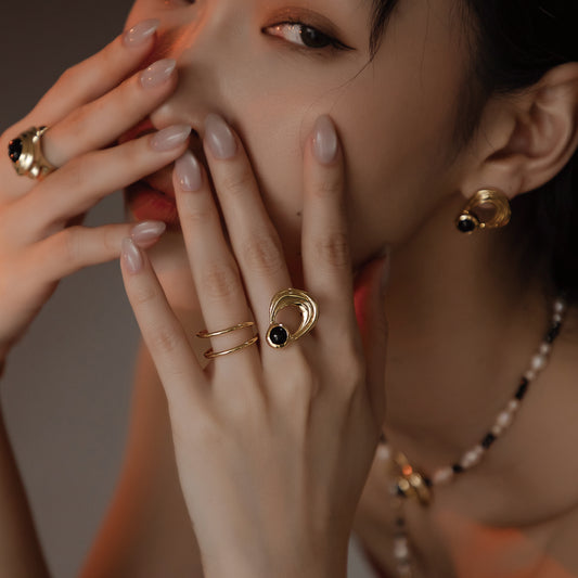 太陽閃焰 日珥黑瑪瑙雙指戒-厚鍍18K金