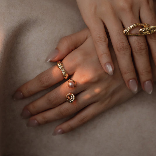 太陽閃焰 冕雨珍珠戒指-厚鍍18K金