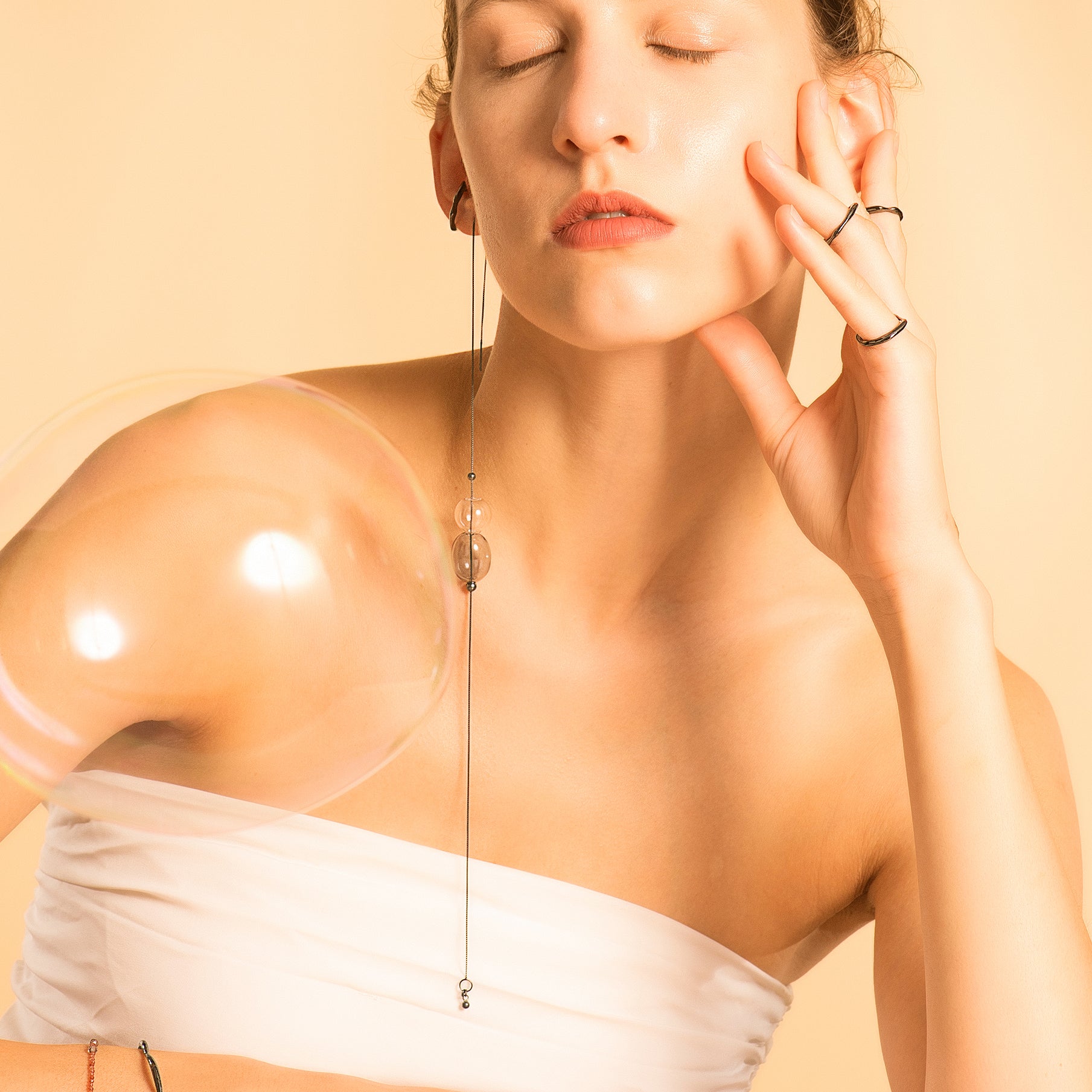 - Material: Oxidised 925 silver, glass bubbles