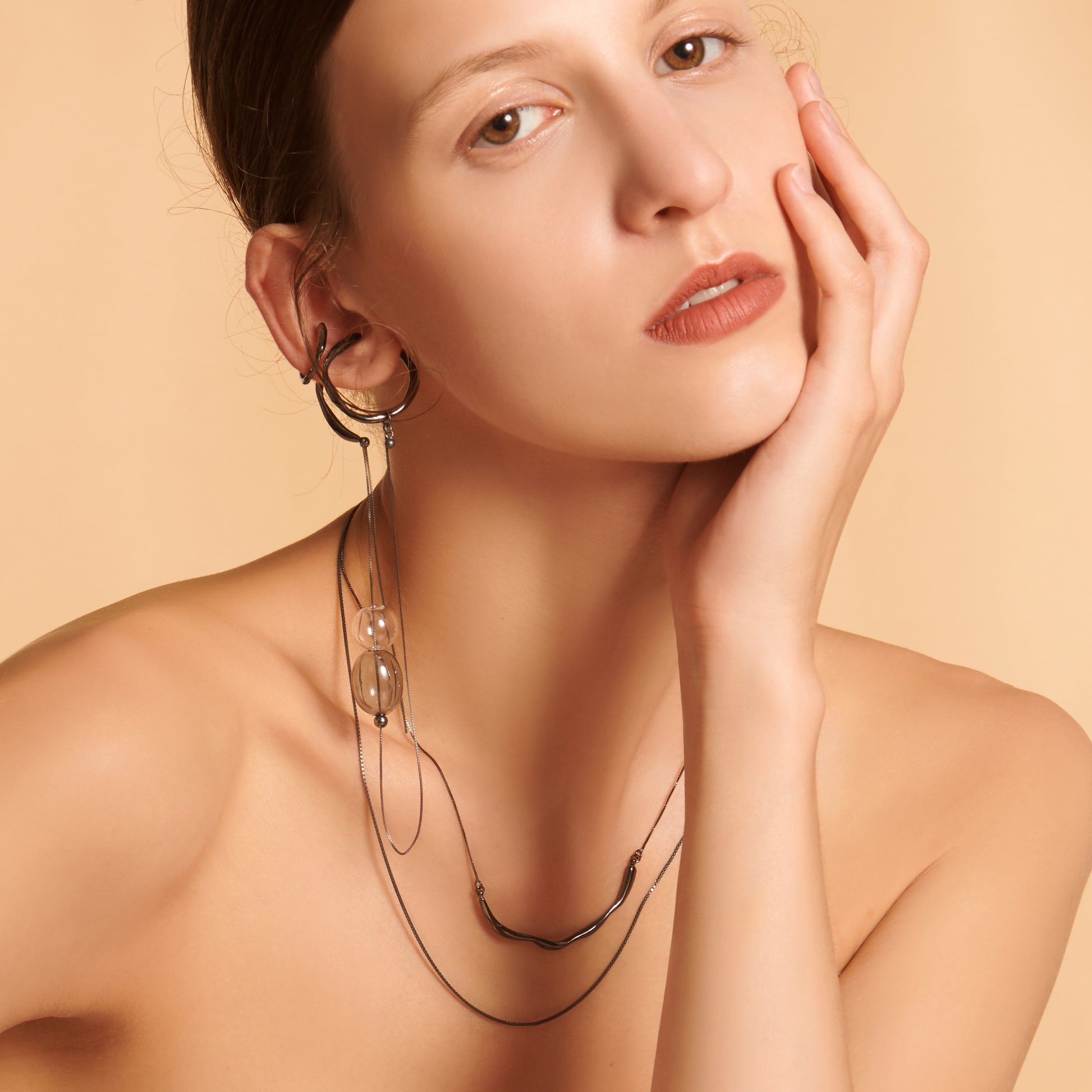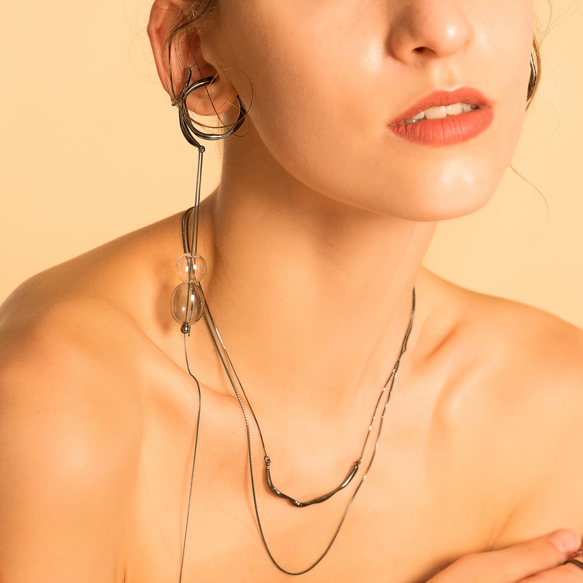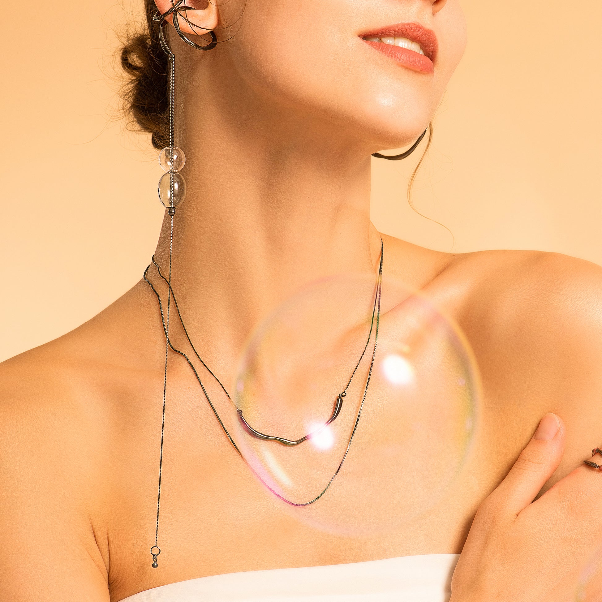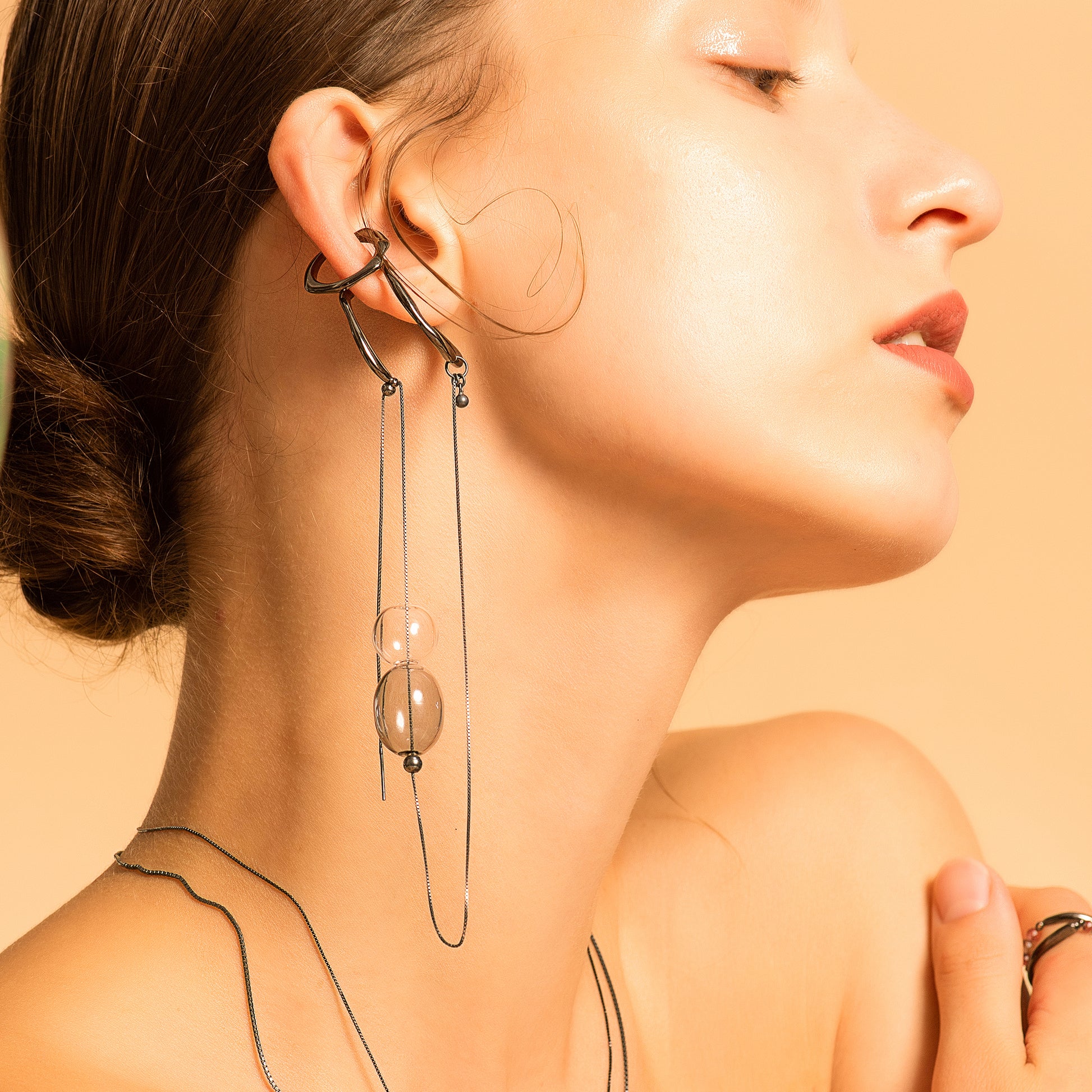 DATE. 18/08/21. Bubble Nebula-Double Hoop Ear Cuff+Bubble Threader Earring (Black)