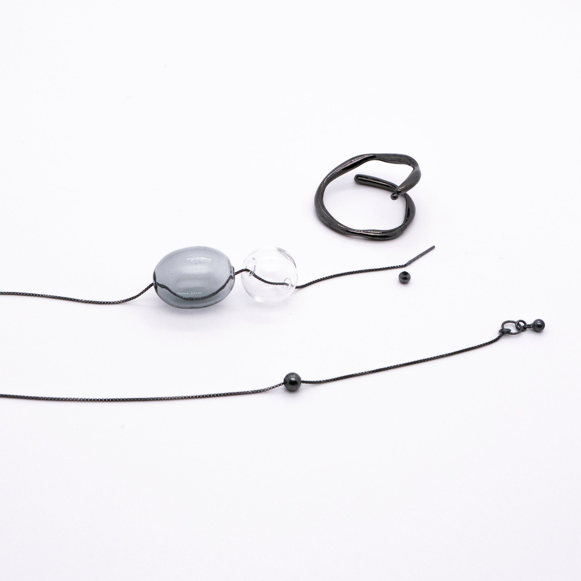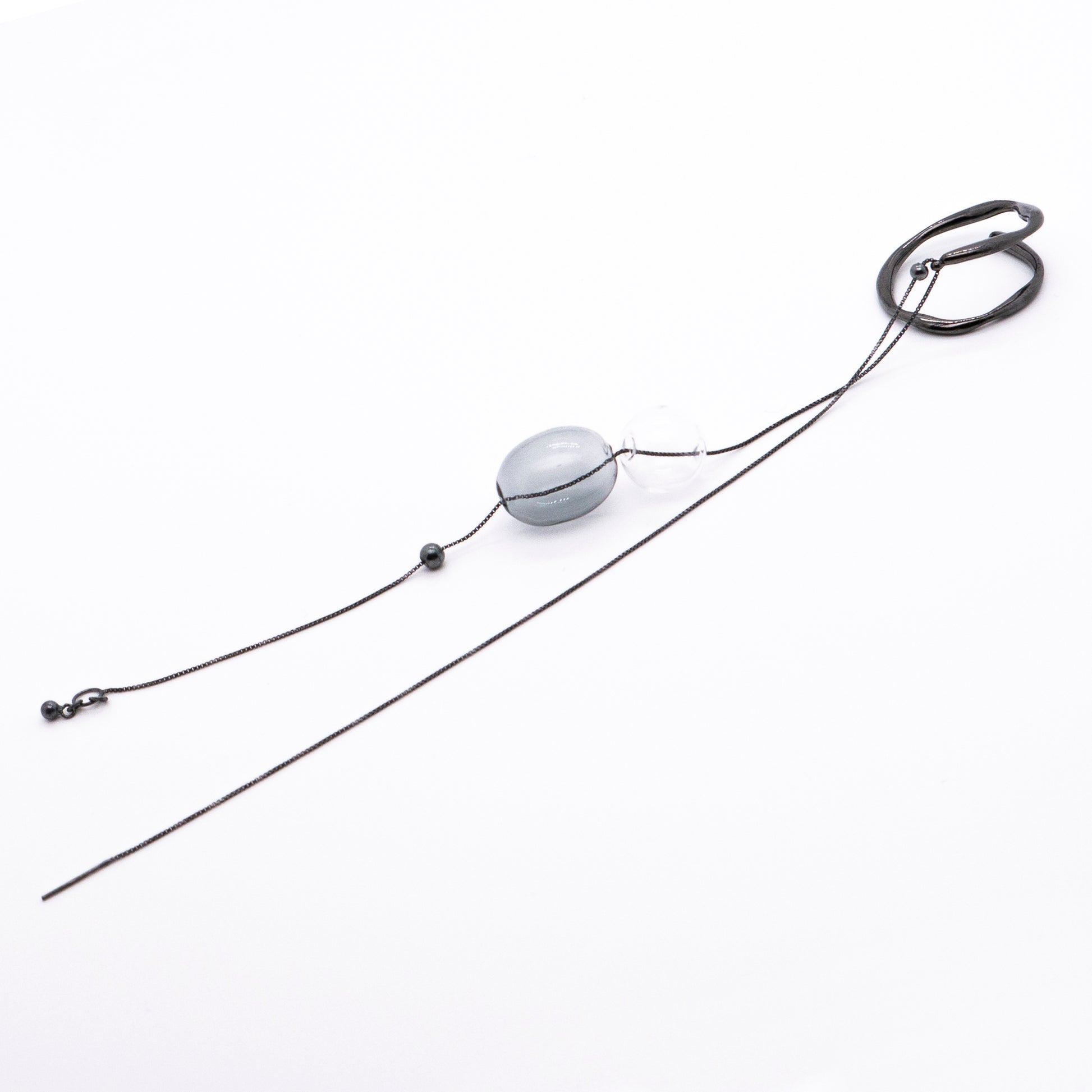Material: Oxidised 925 silver, glass bubbles / Length:32.5cm