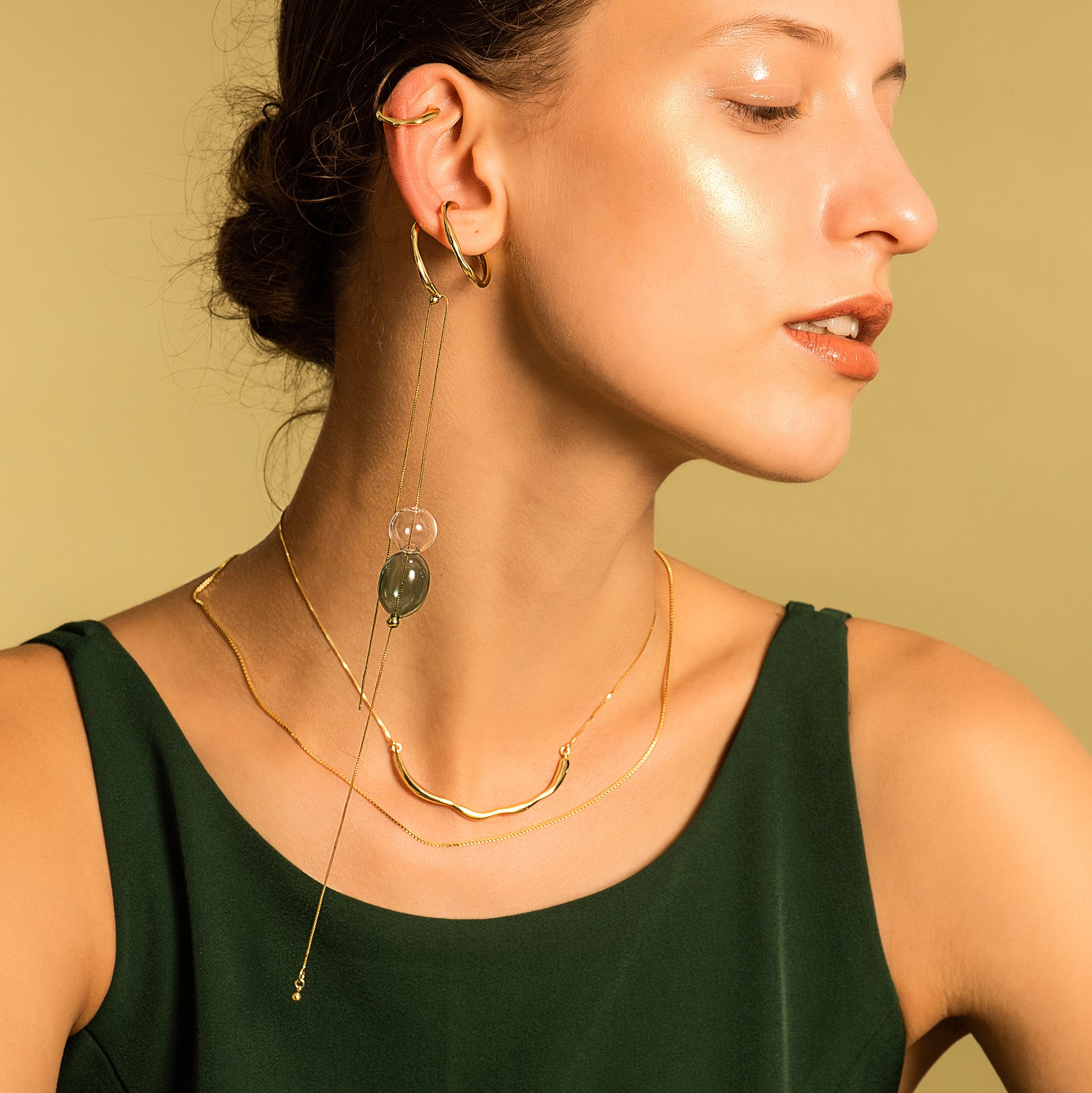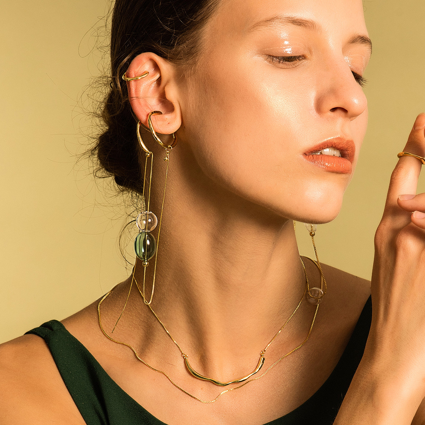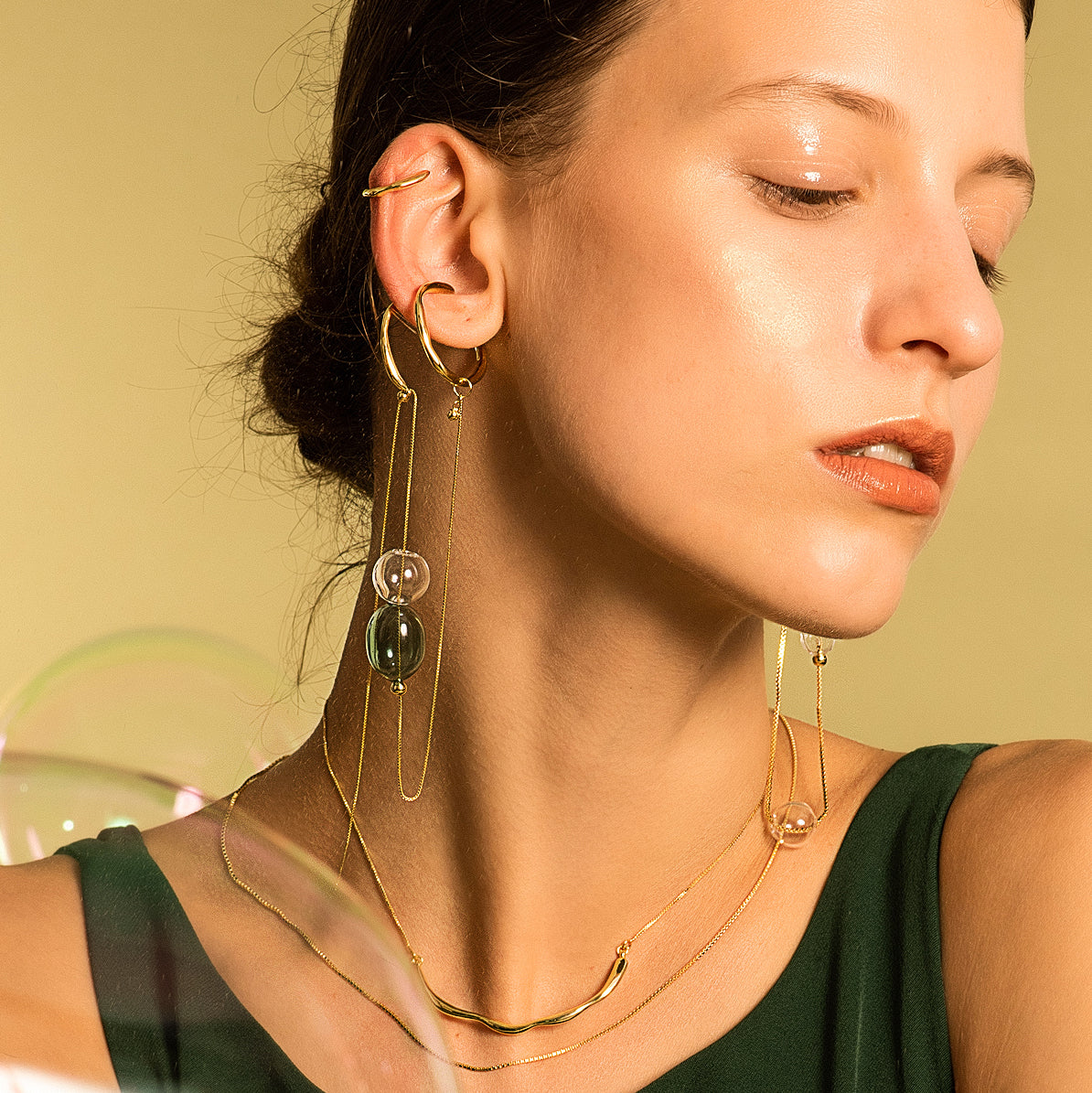 DATE. 18/08/21. Bubble Nebula-Double Hoop Ear Cuff+Bubble Threader Earring (Gold Plated)