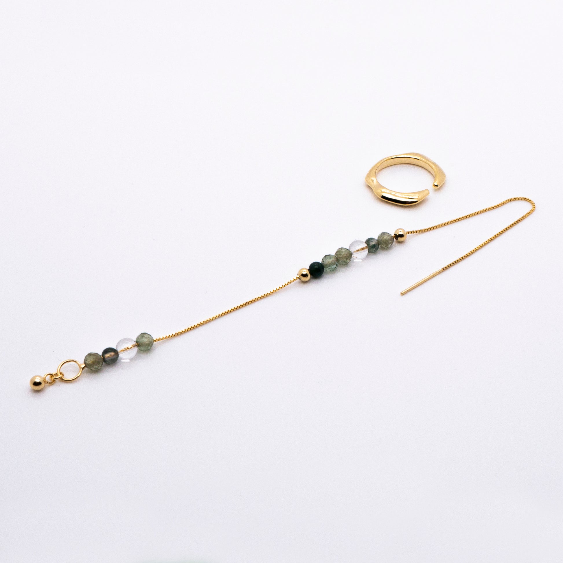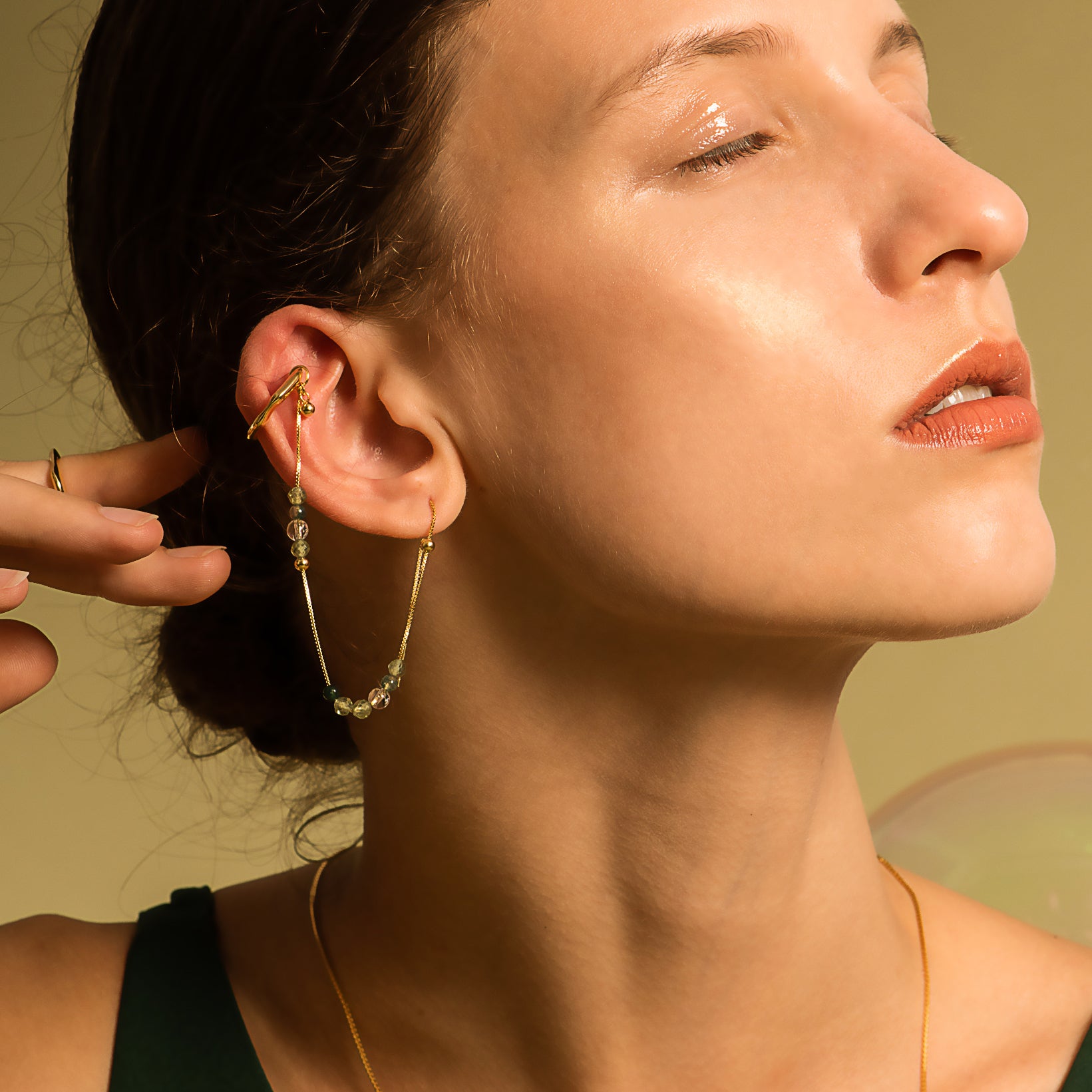 Bubble Nebula - Hoop Ear Cuff + Beading Threader Earring (Gold Plated)
