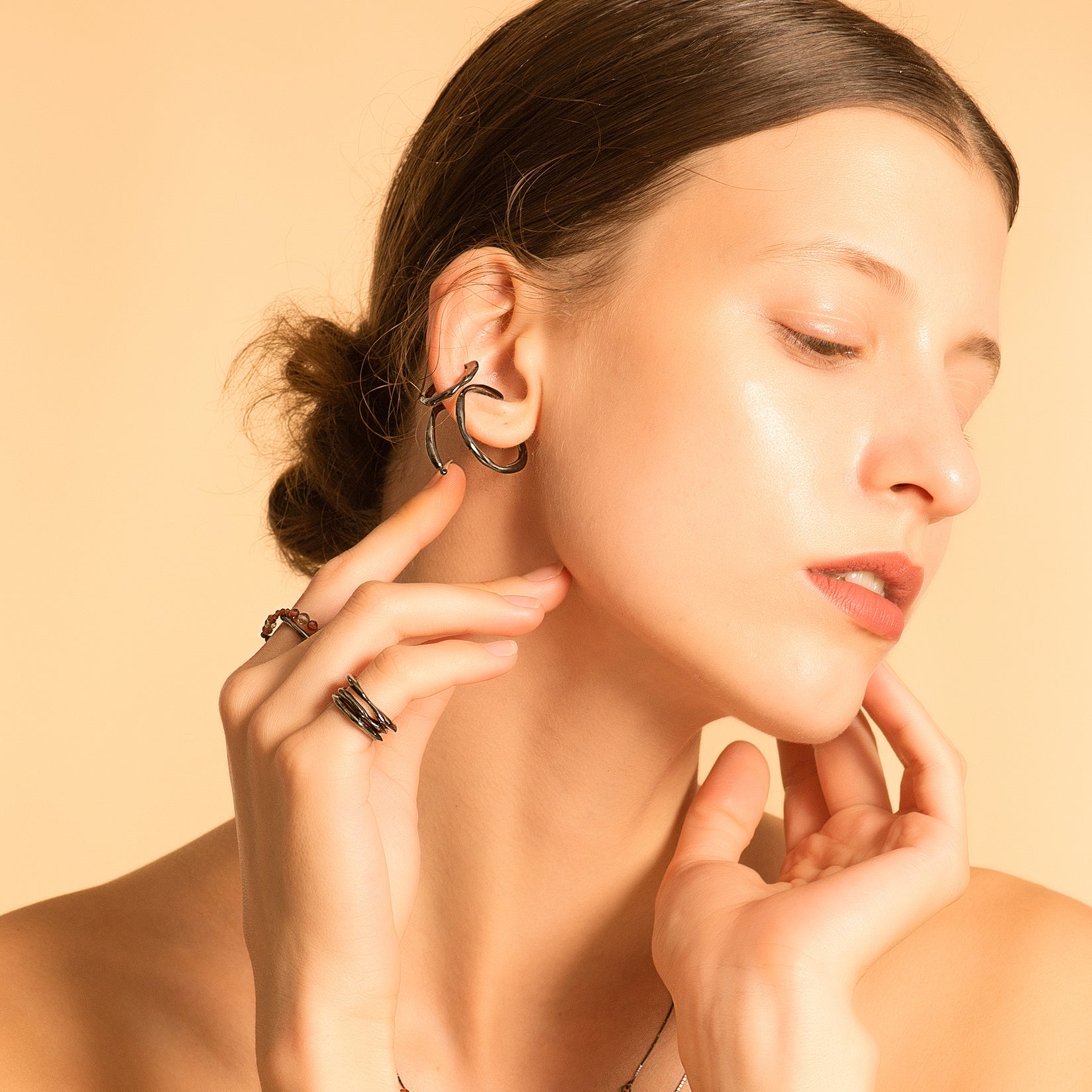 DATE. 18/08/21. Bubble Nebula - Double Hoop Ear Cuff (Black Gold Plated)