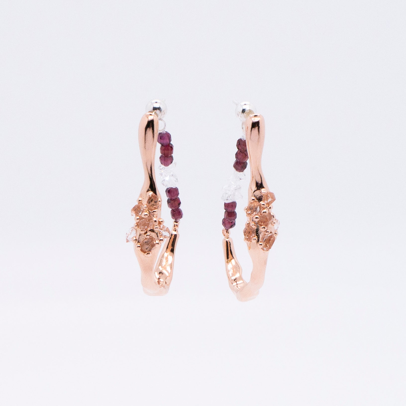 DATE. 22/03/23. Space Ice - Magenta Mist - Herkimer Diamond Hoop Earrings (Rose Gold Plated)