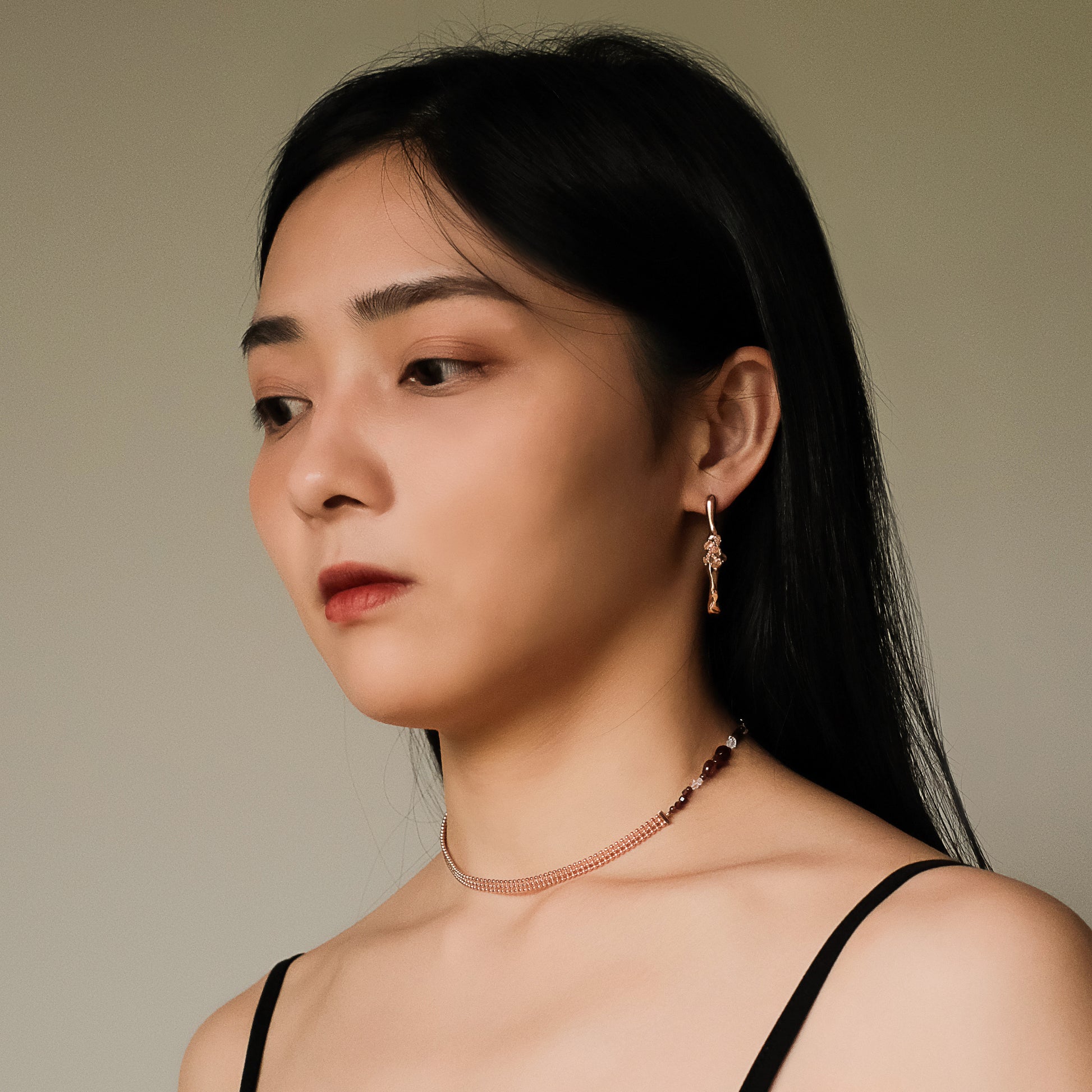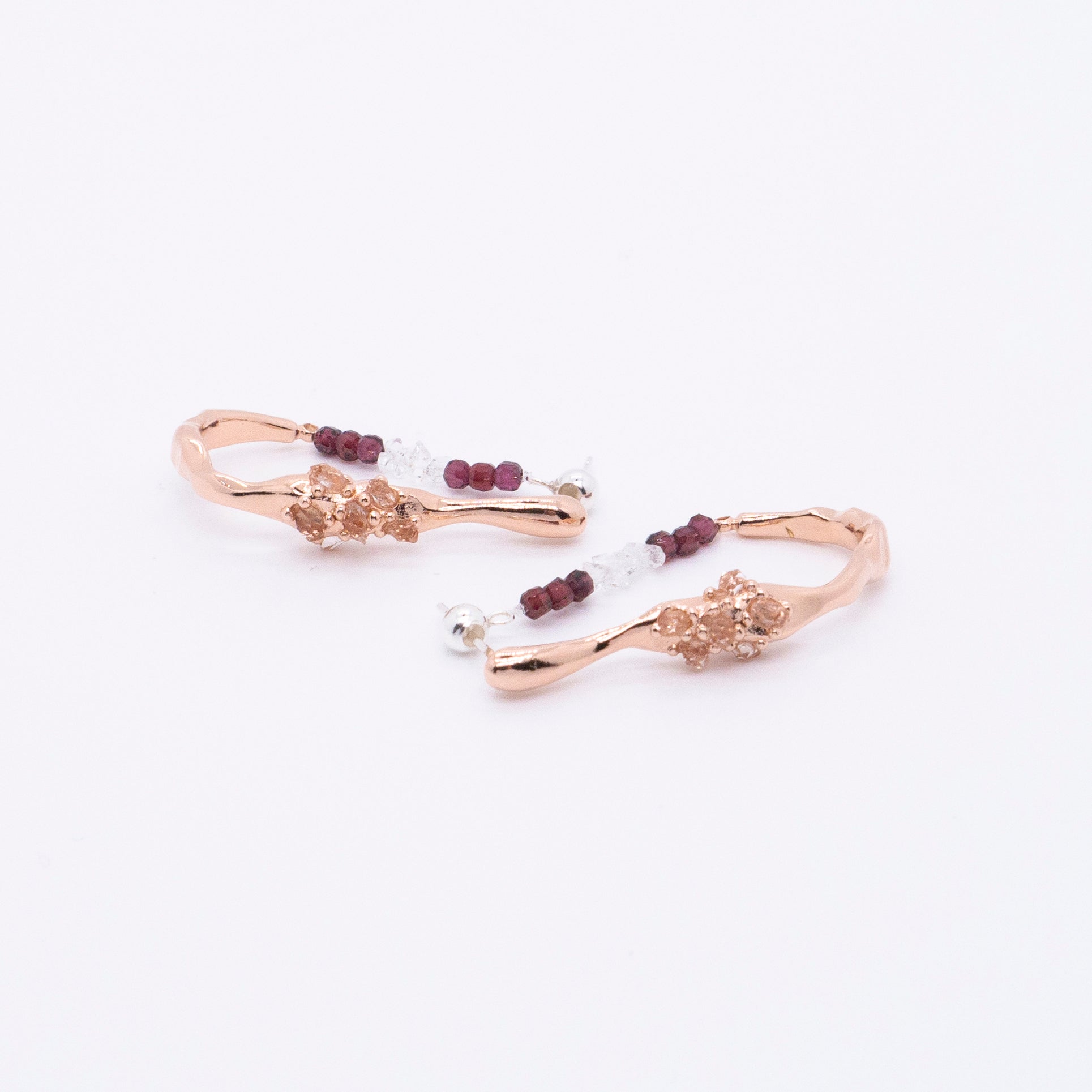 / PRODUCT DETAILS- Material: Rose Gold Plated Brass, 925 Silver Pins & Earring Backs, Herkimer Diamonds (Quartz), Garnet