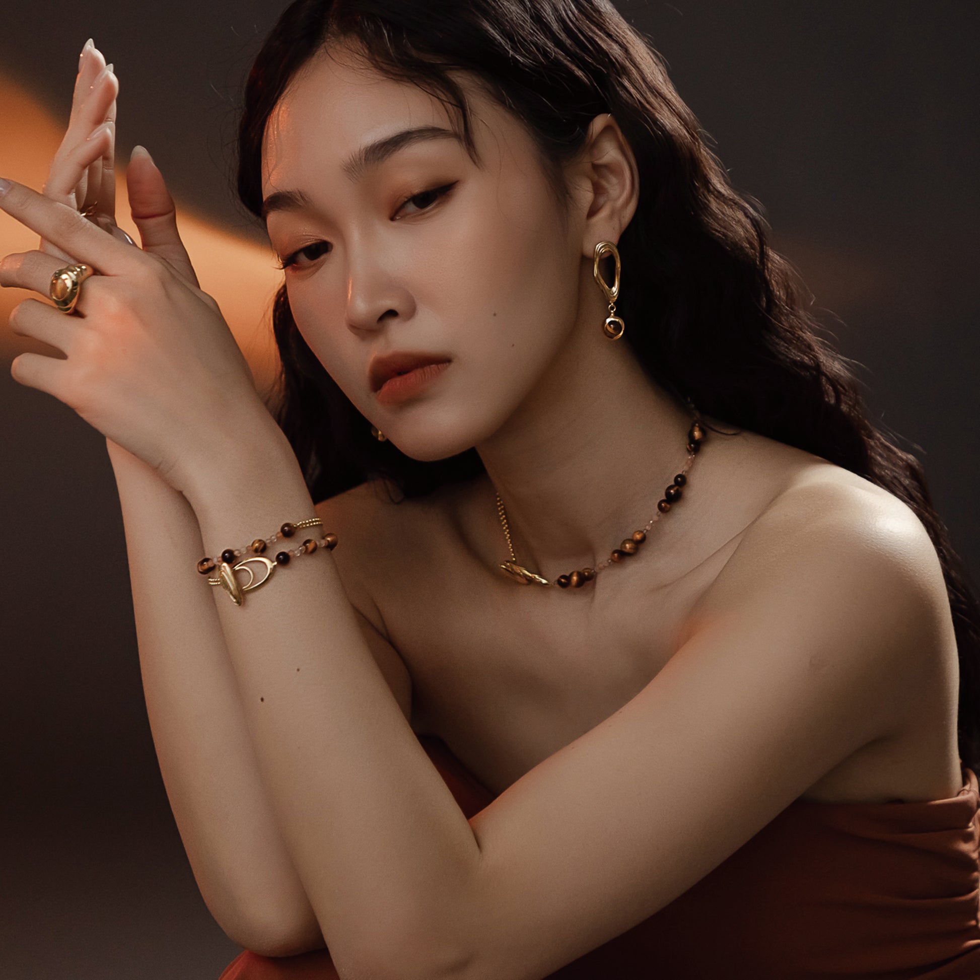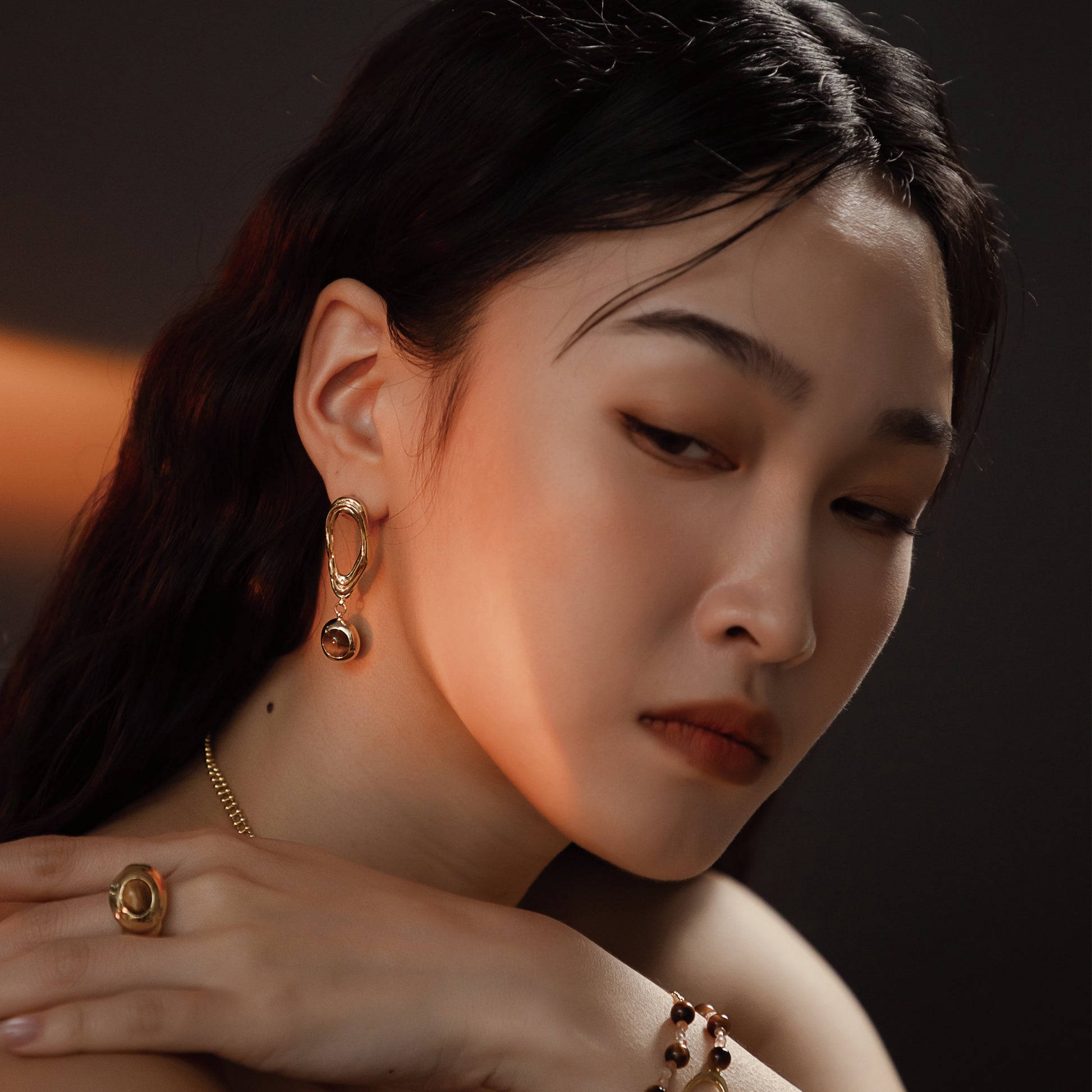 DATE. 28/09/24. Solar Flares - Coronal Loop Tigerite Earrings (18K Gold Plated)