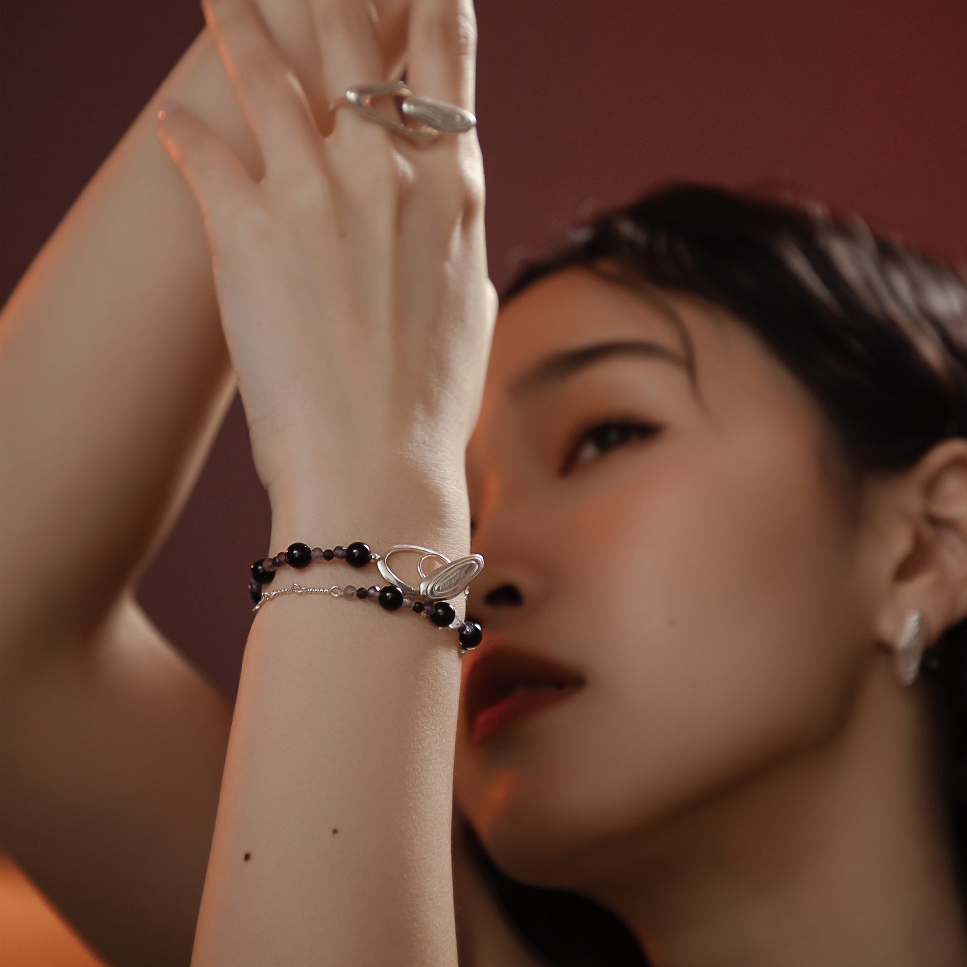 Solar Flares - Magnetic Storm Black Agate Iolite Bracelet (Silver)
