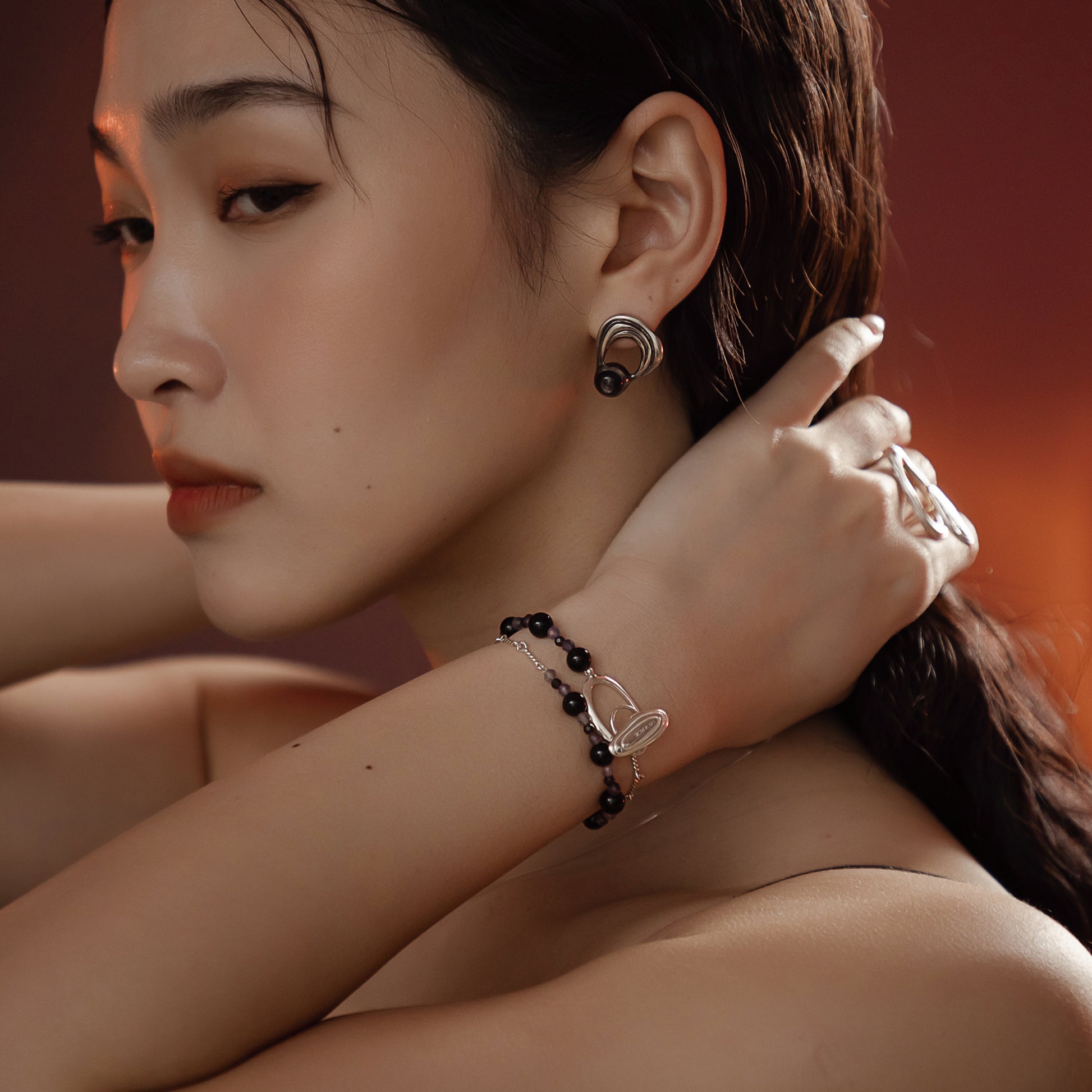 DATE. 28/09/24. Solar Flares - Magnetic Storm Black Agate Iolite Bracelet (Silver)