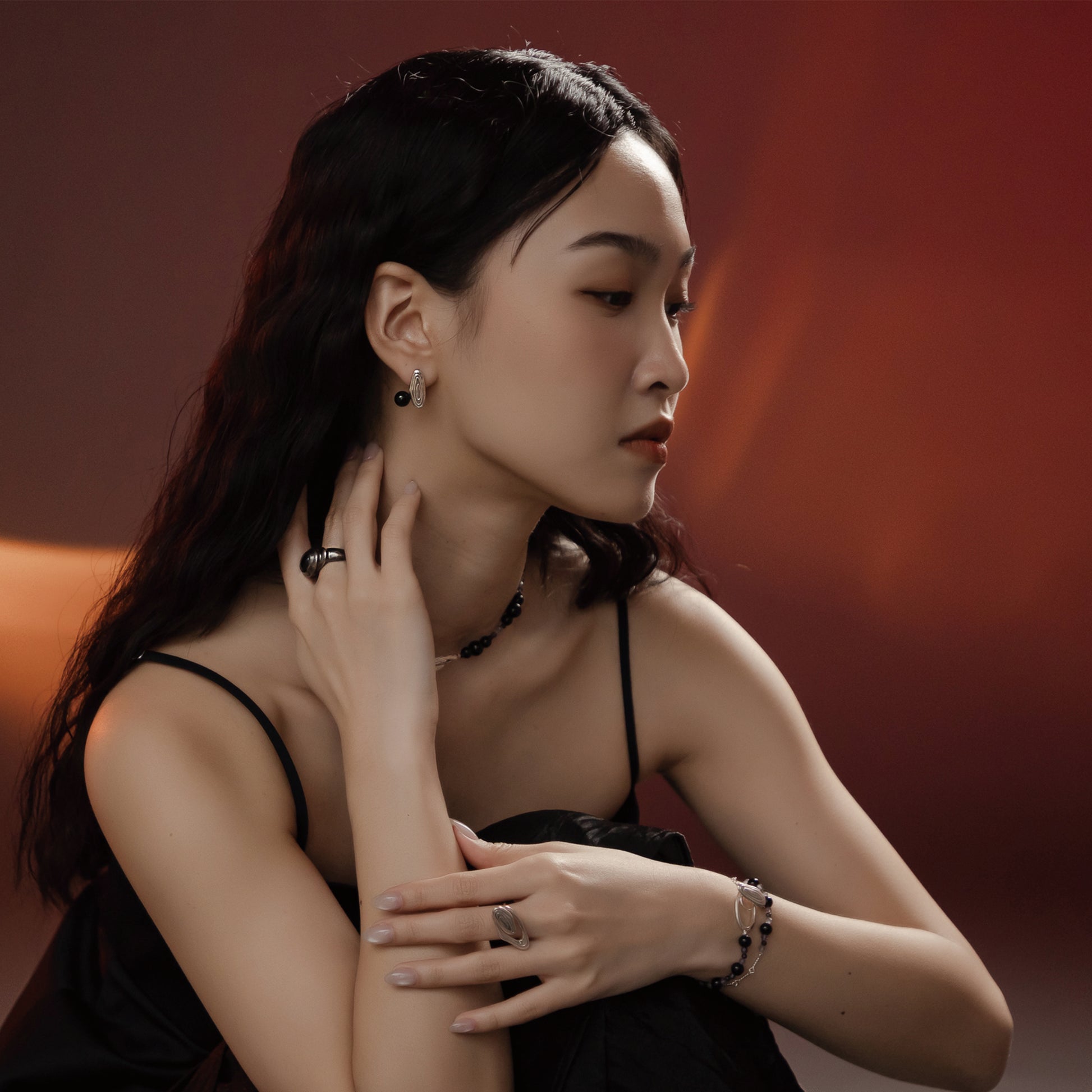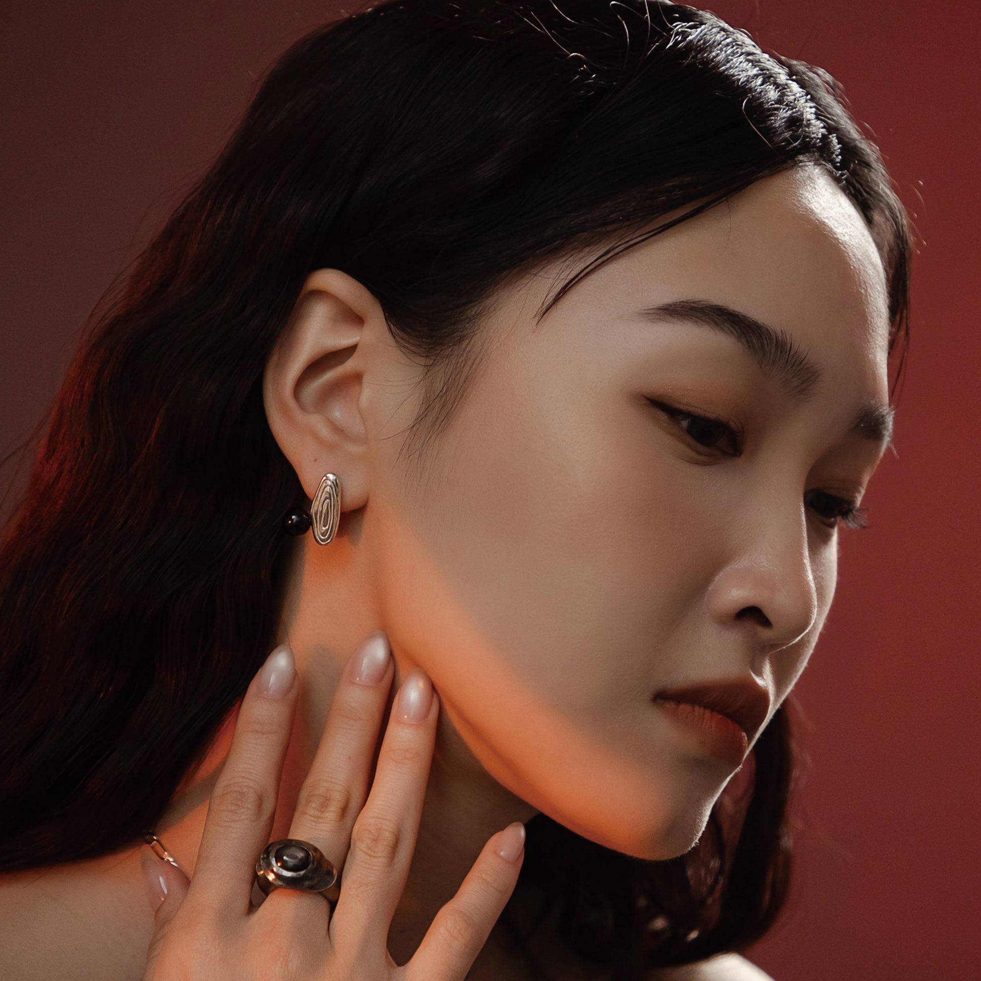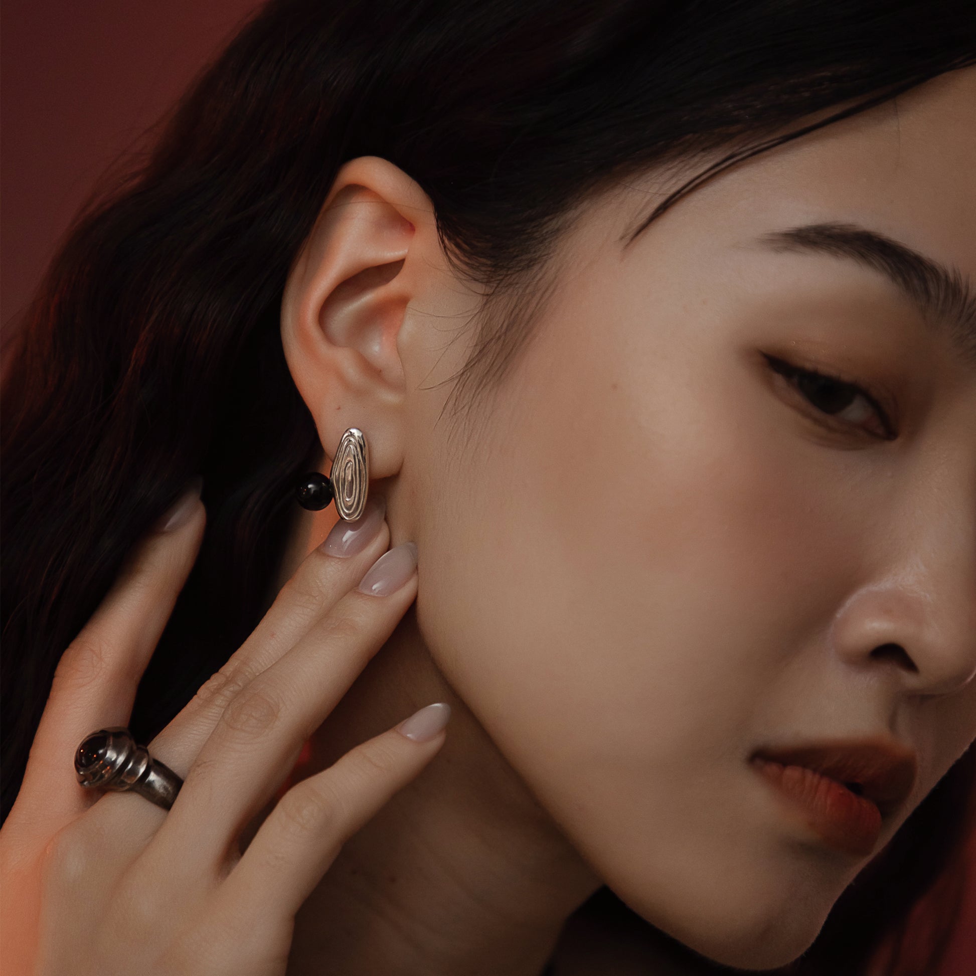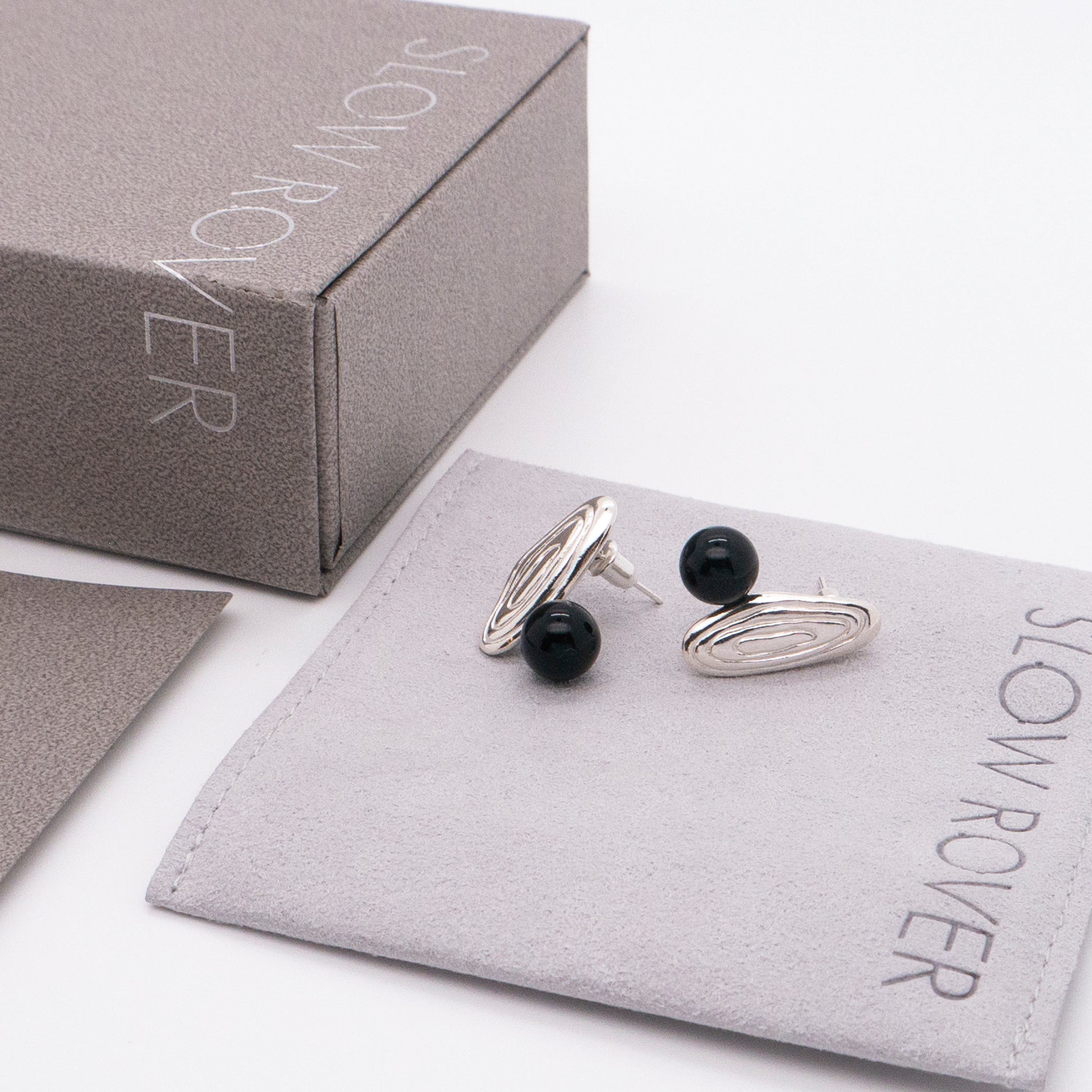 DATE. 28/09/24. Solar Flares - Sunspots Black Agate Earrings (Silver)