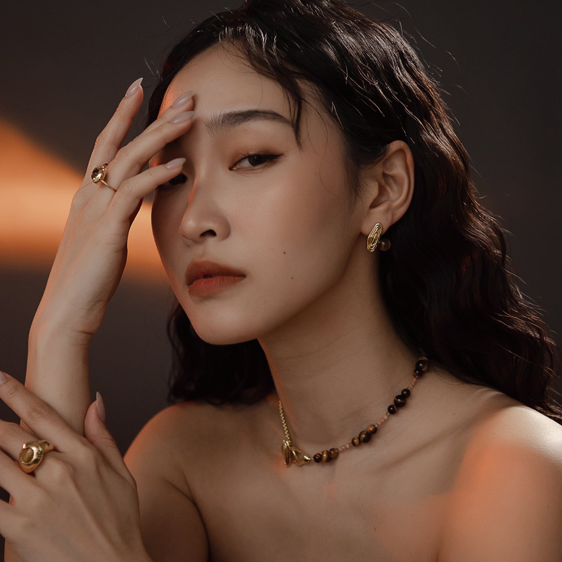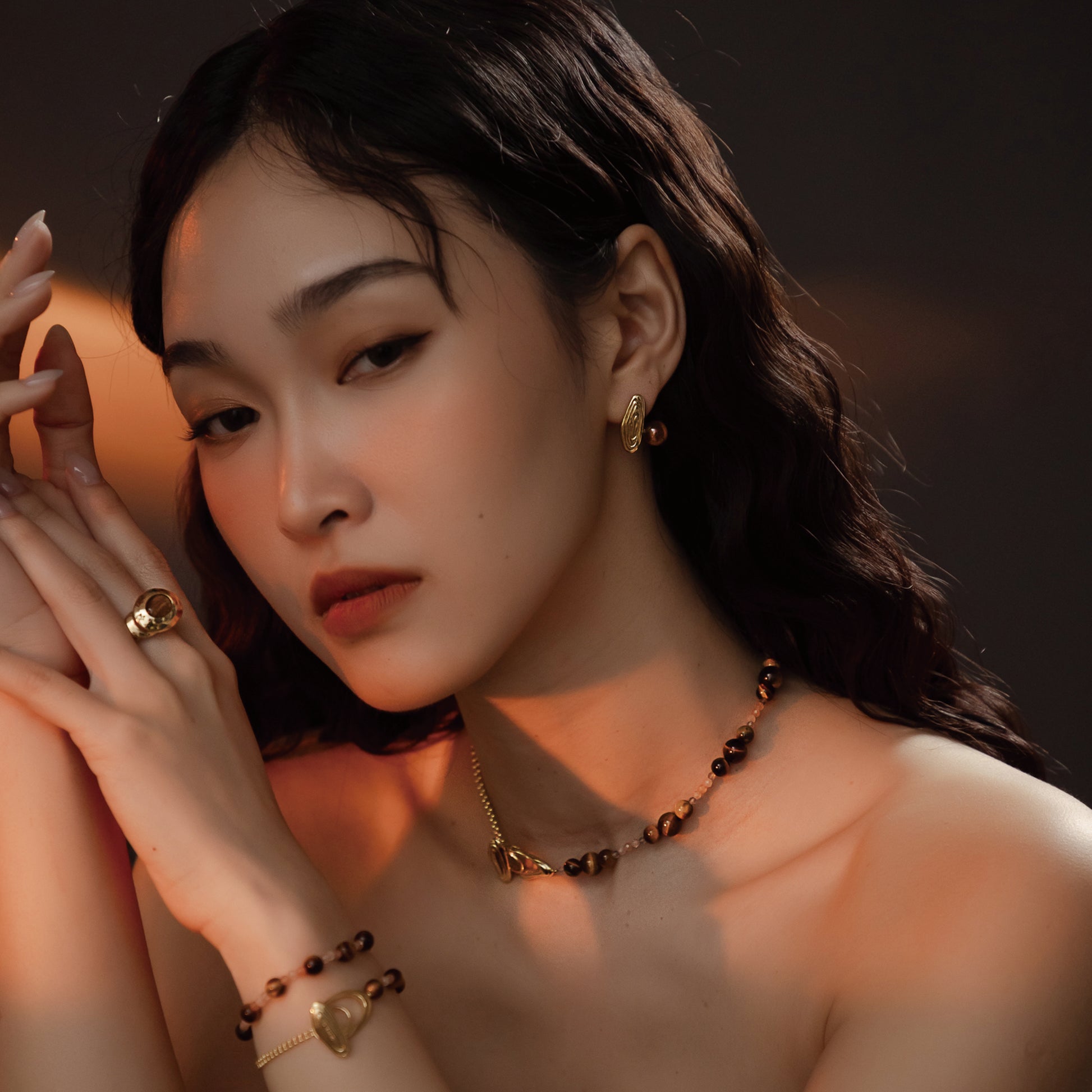 Solar Flares - Sunspots Tigerite Earrings (18K Gold Plated)