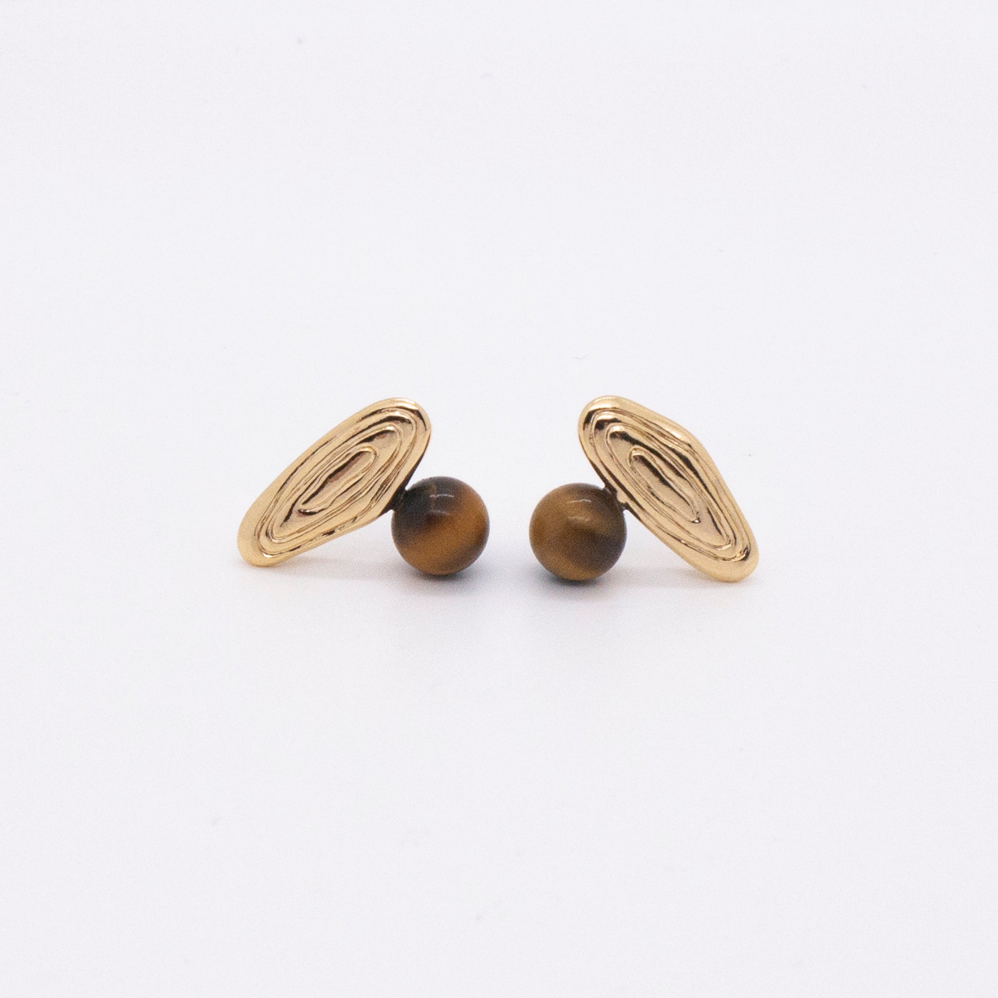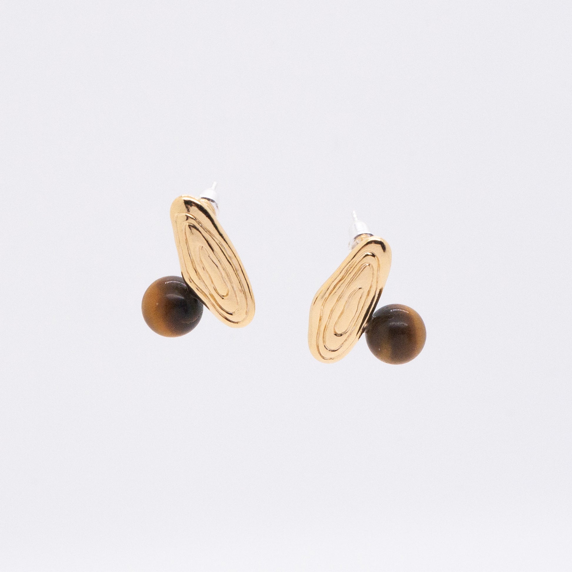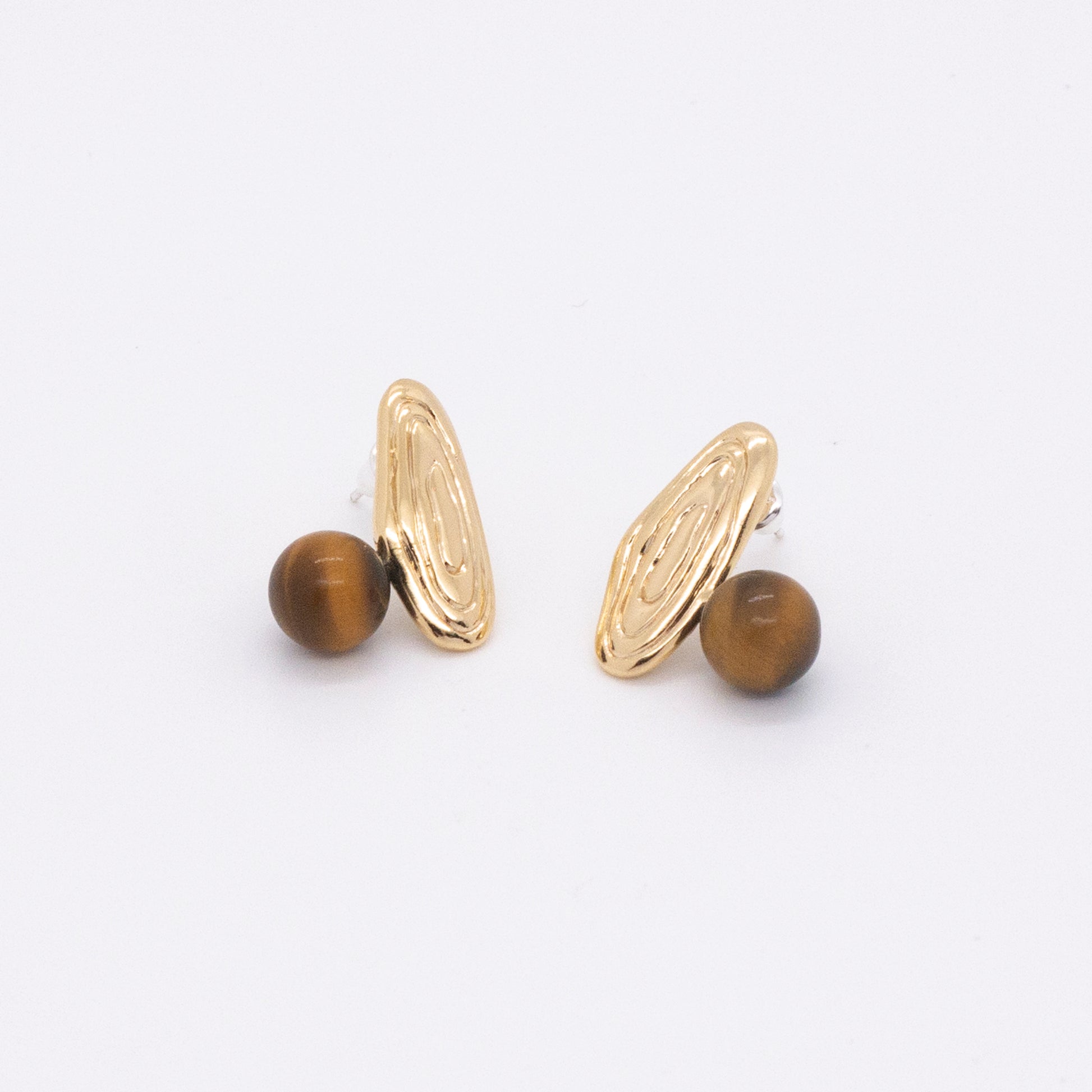 - Material:18K gold plated brass, Silver pins & earring backs, Tigerite