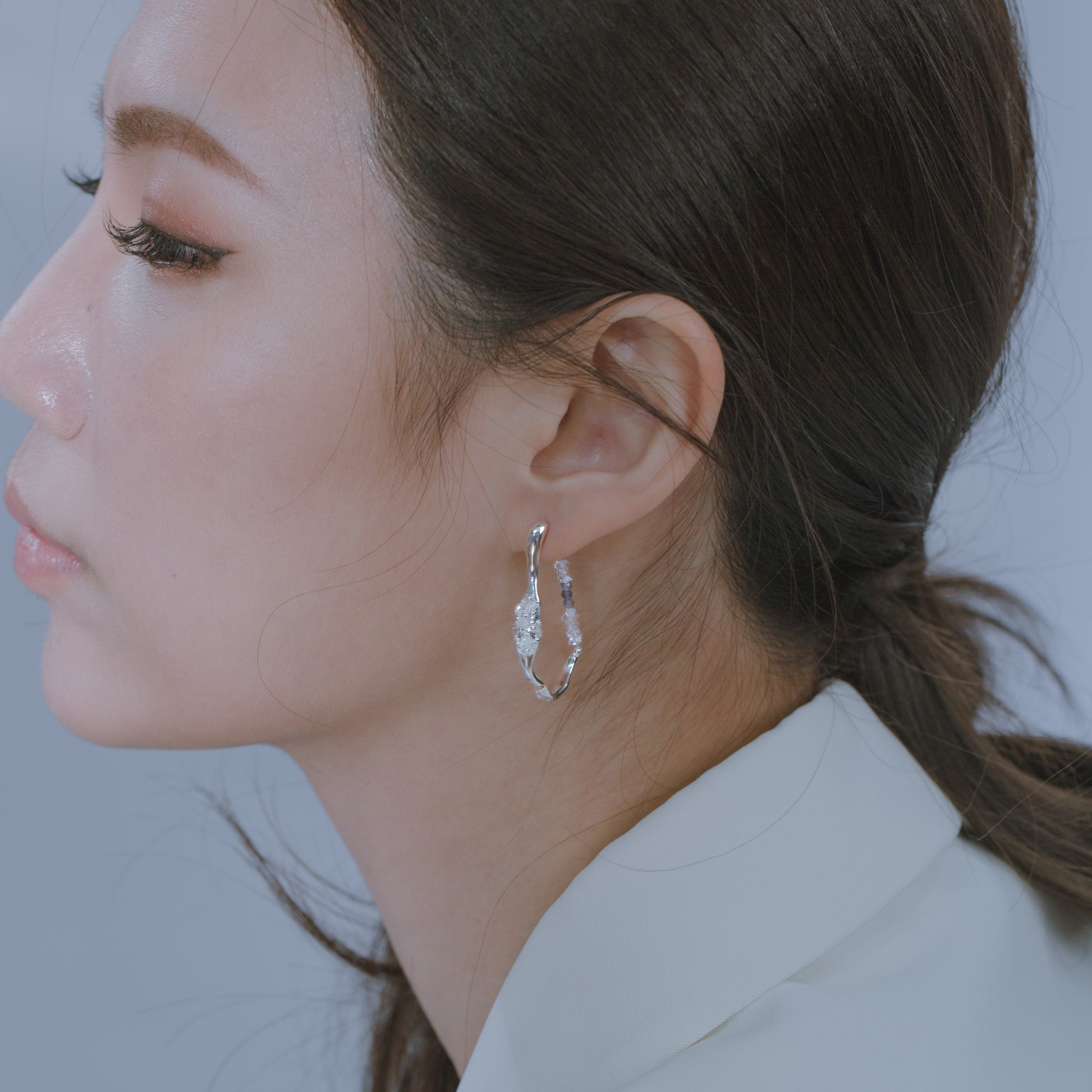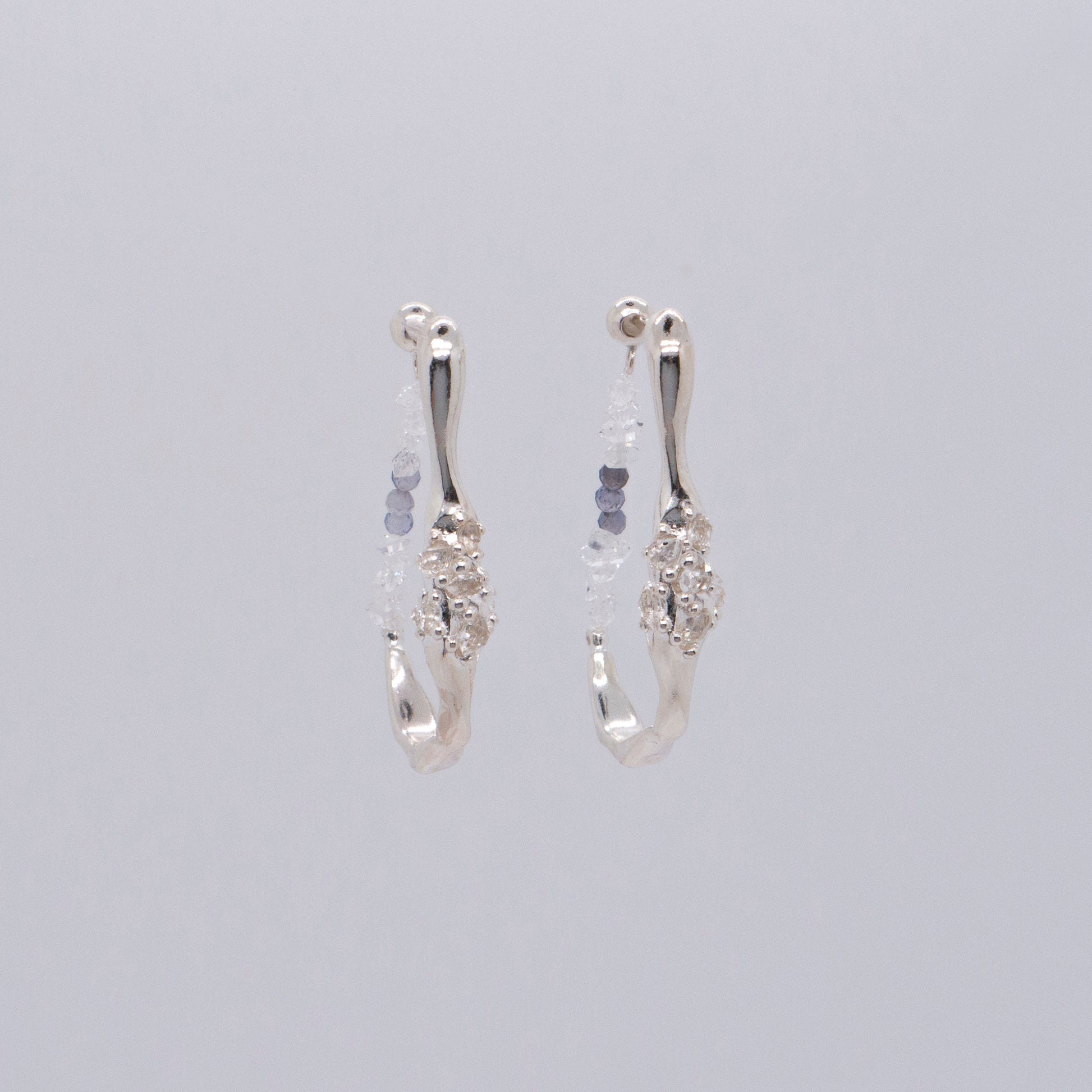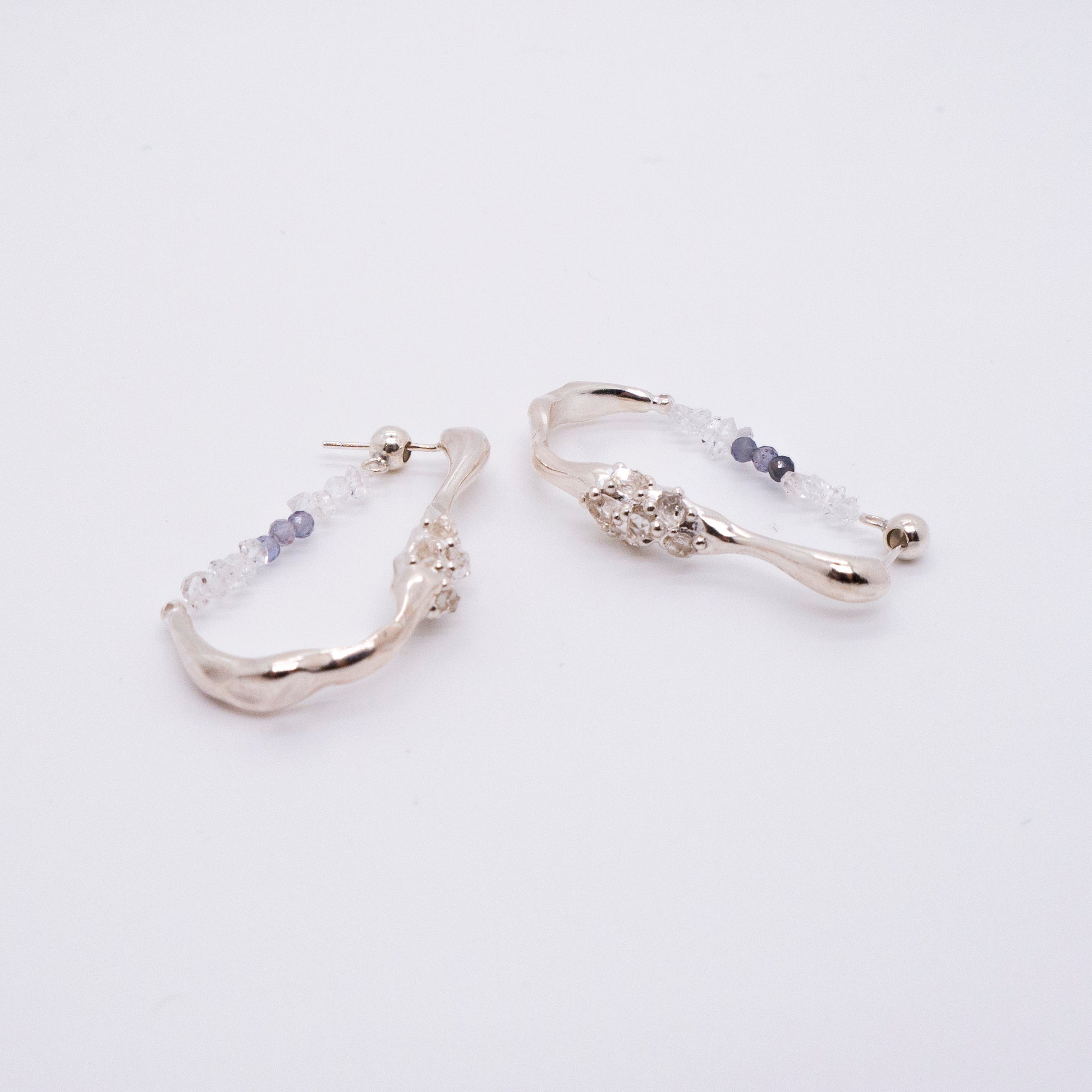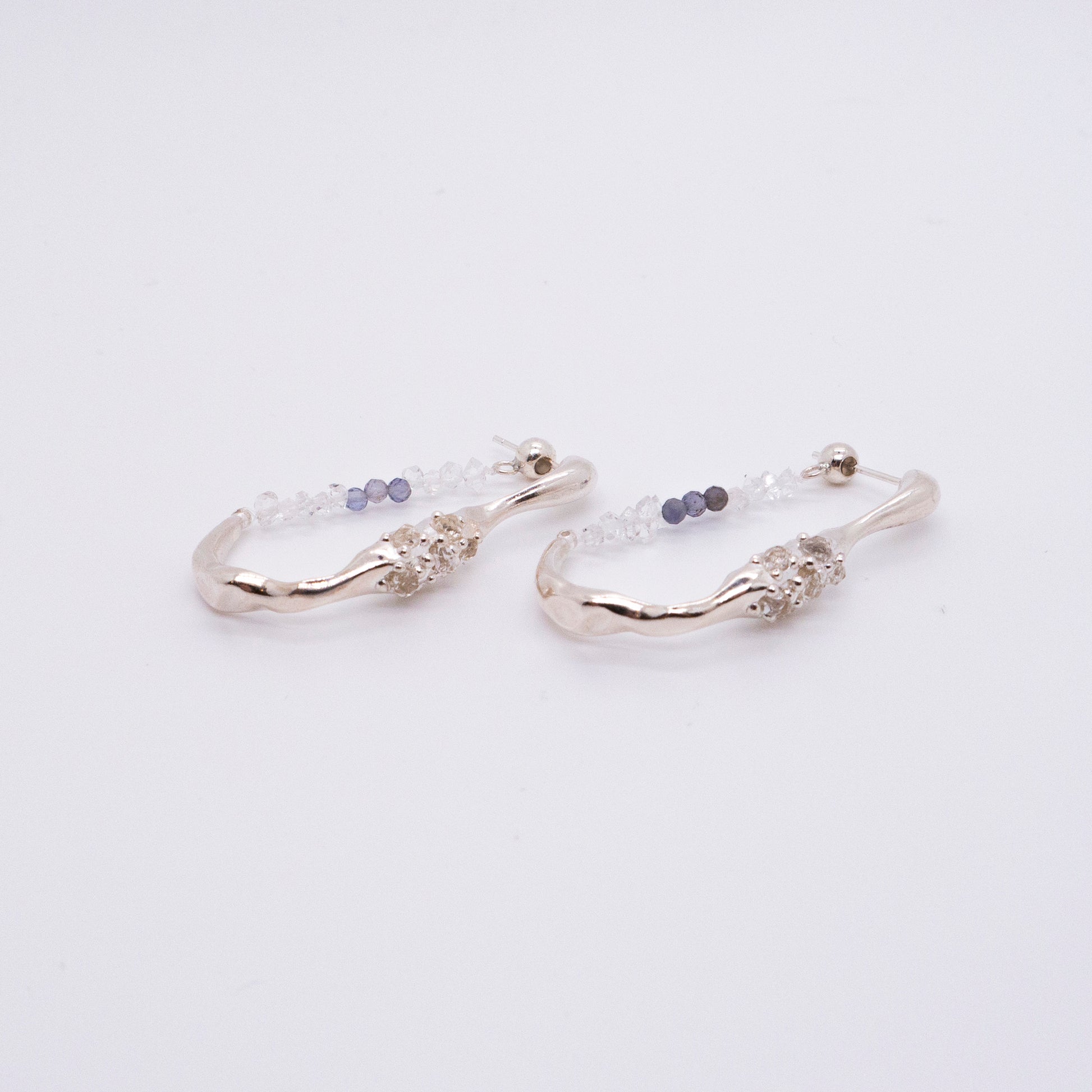 DATE. 09/10/22. Space Ice - Herkimer Diamond Hoop Earrings (Silver)