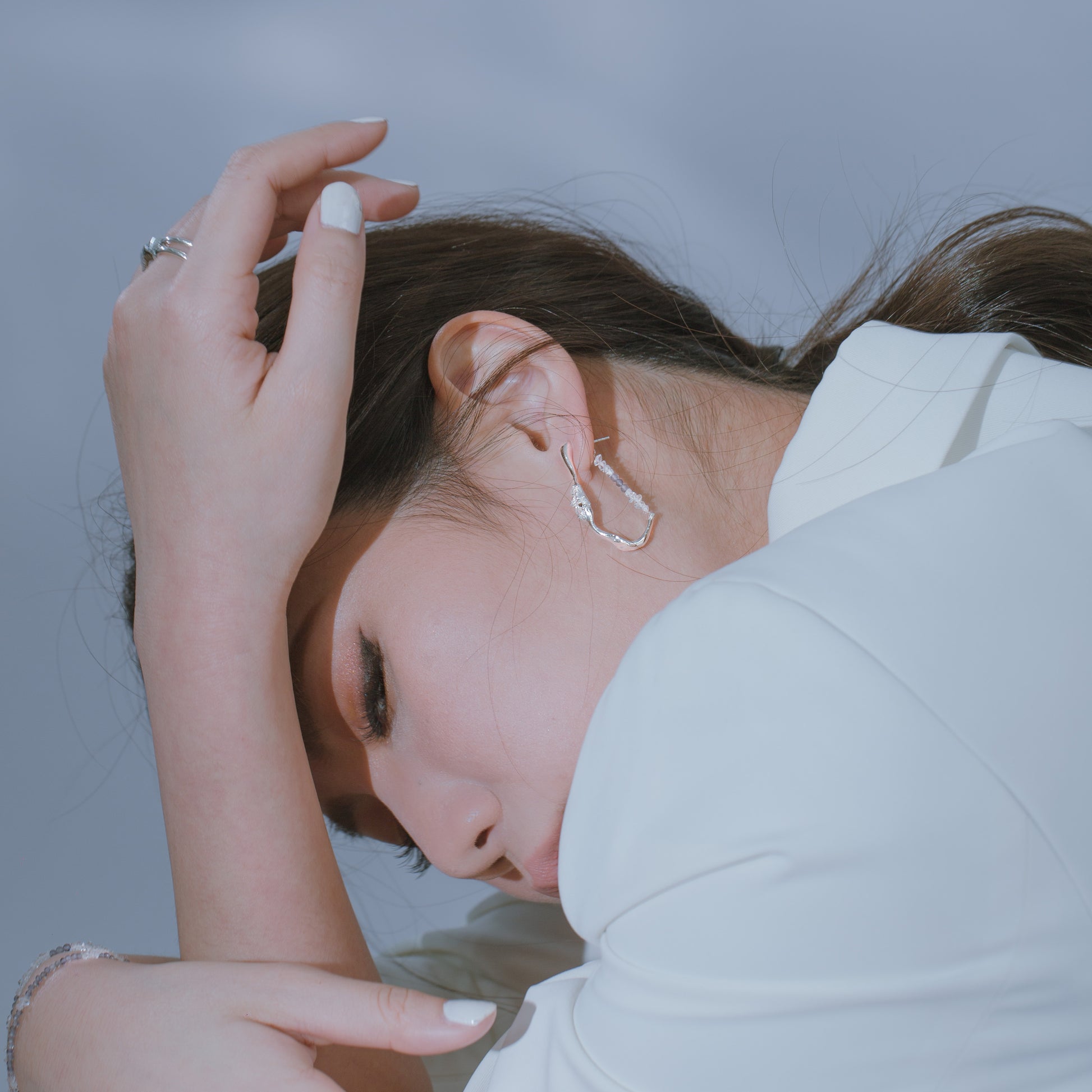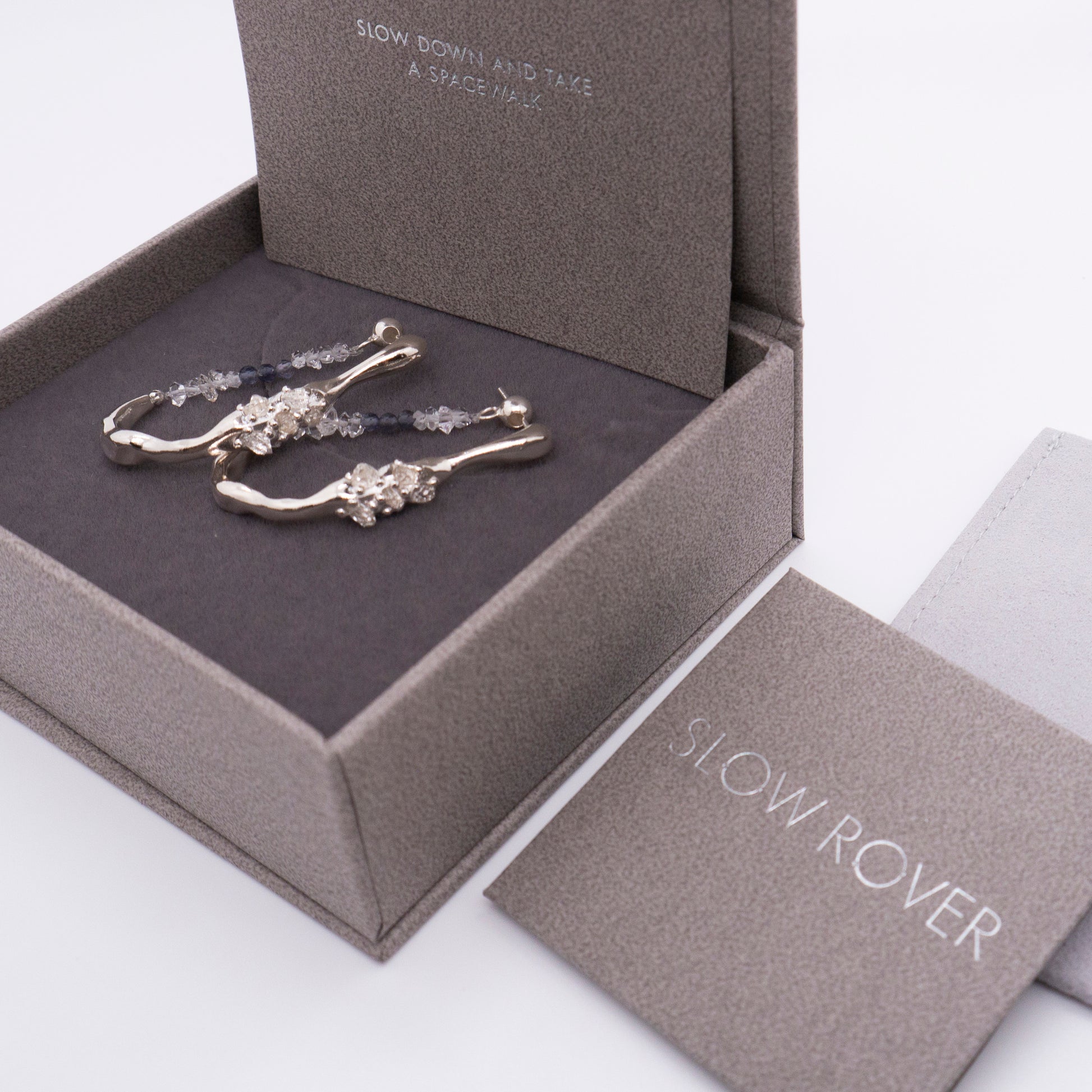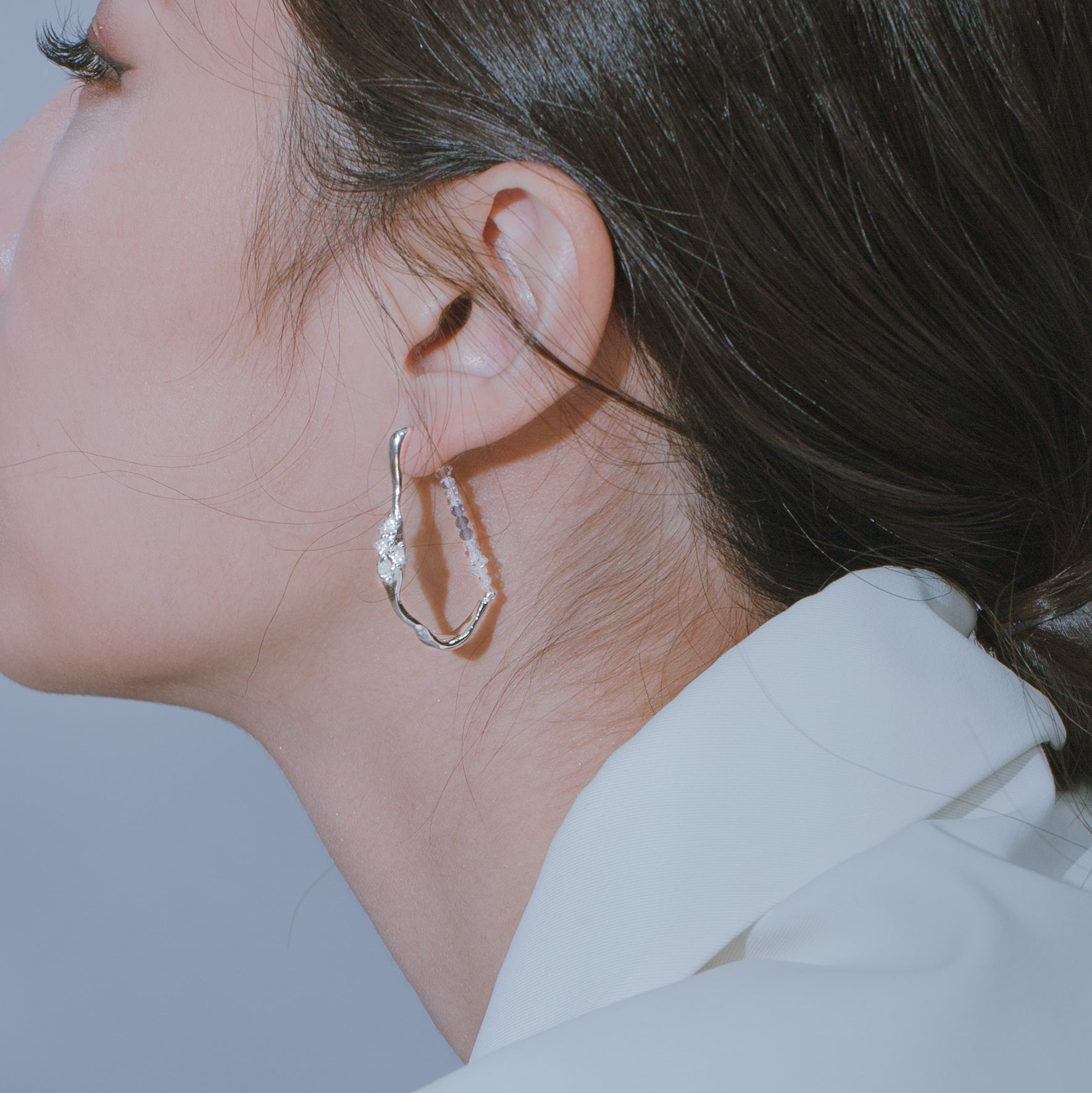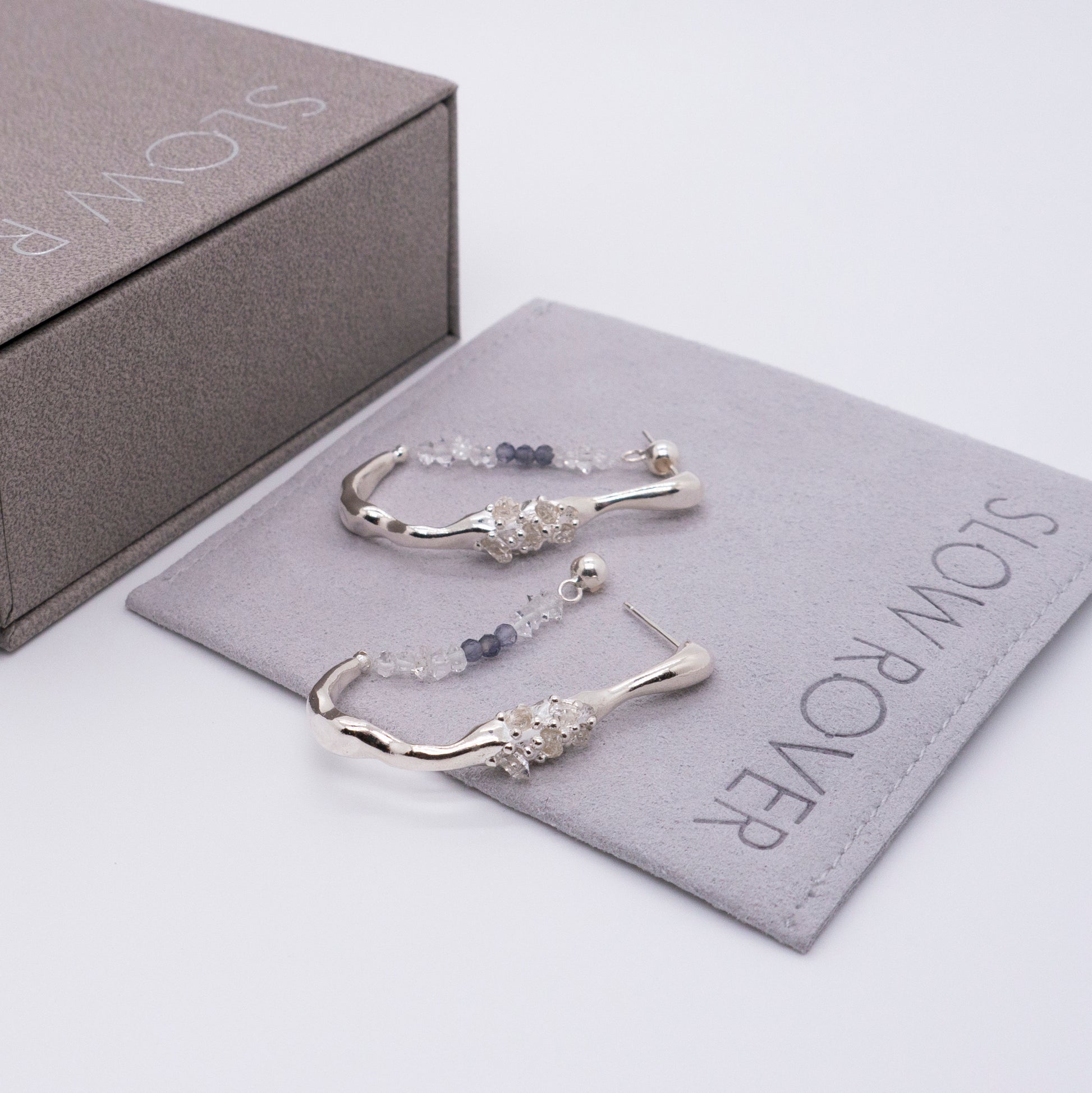 DATE. 09/10/22. Space Ice - Herkimer Diamond Hoop Earrings (Silver)