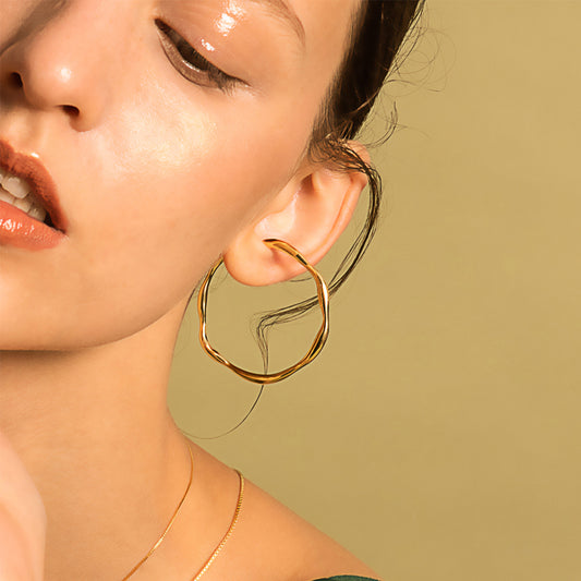 バブル ネビュラ ラージ フープ イヤー クリップ - 厚い 14K ゴールド メッキ
