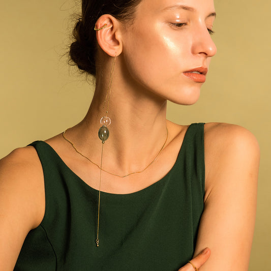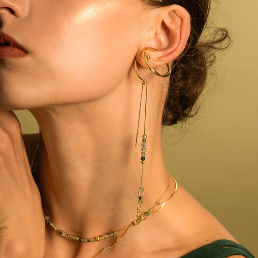 バブルネビュラ スモールイヤークリップ + バブルロングイヤーワイヤー - ゴールドメッキ