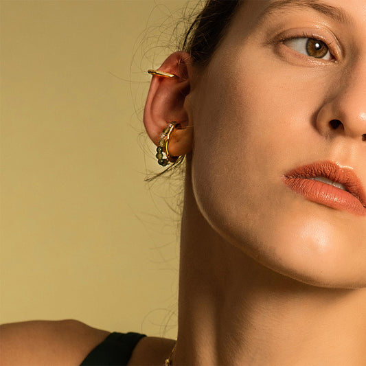Bubble Nebula スモール イヤー クリップ - 厚いブラック ゴールド メッキ