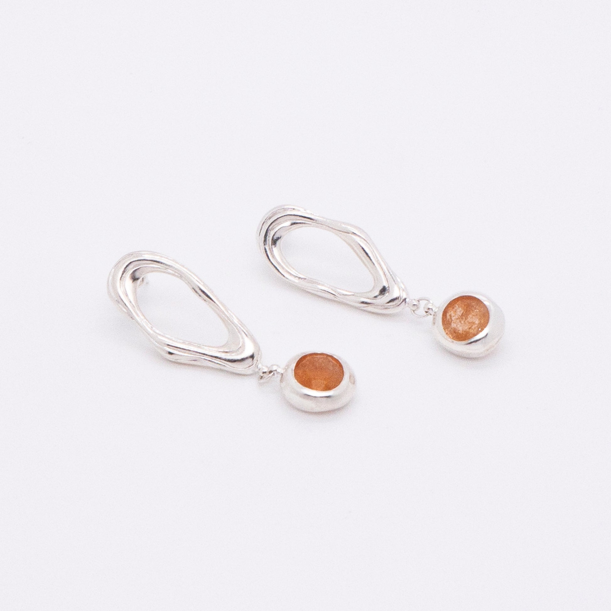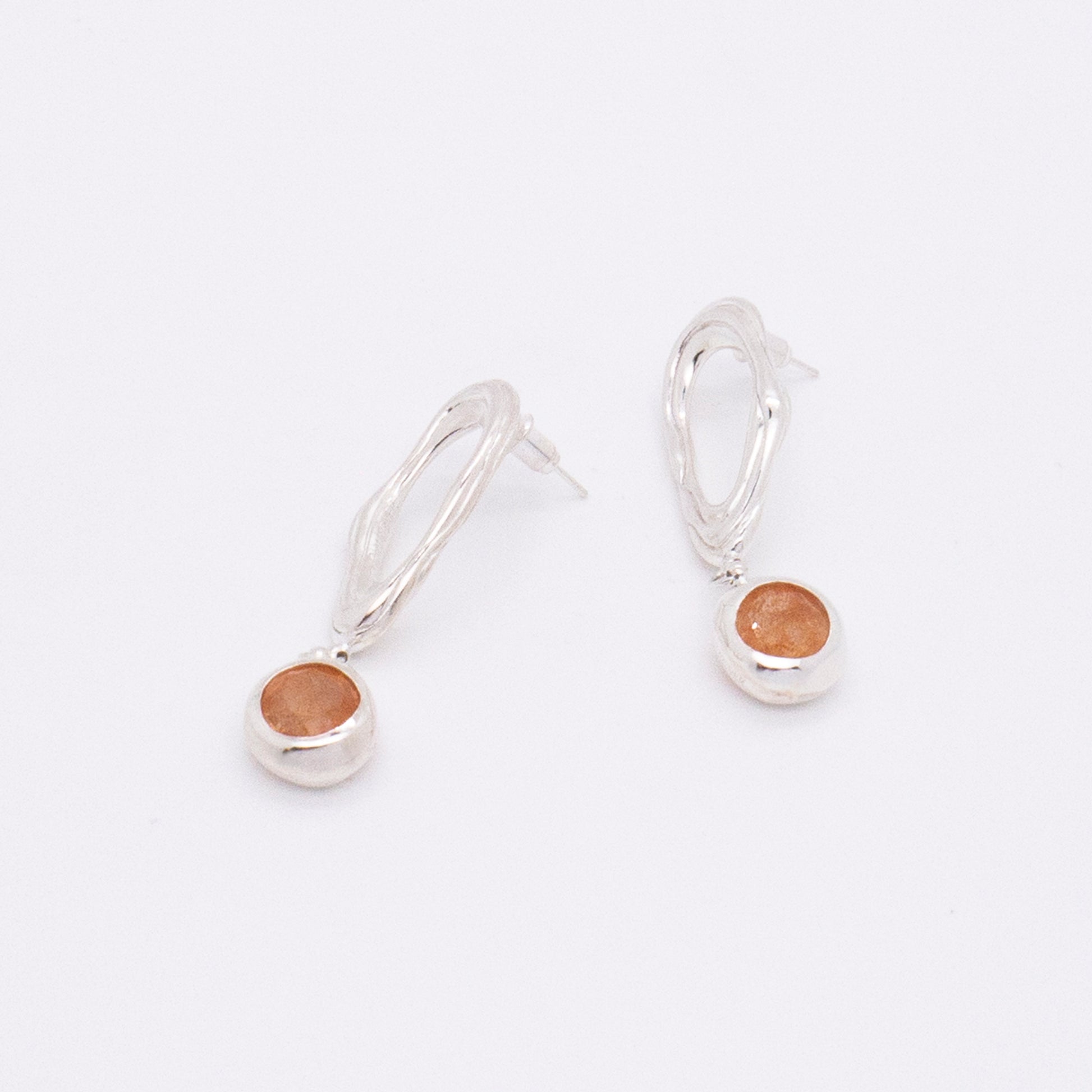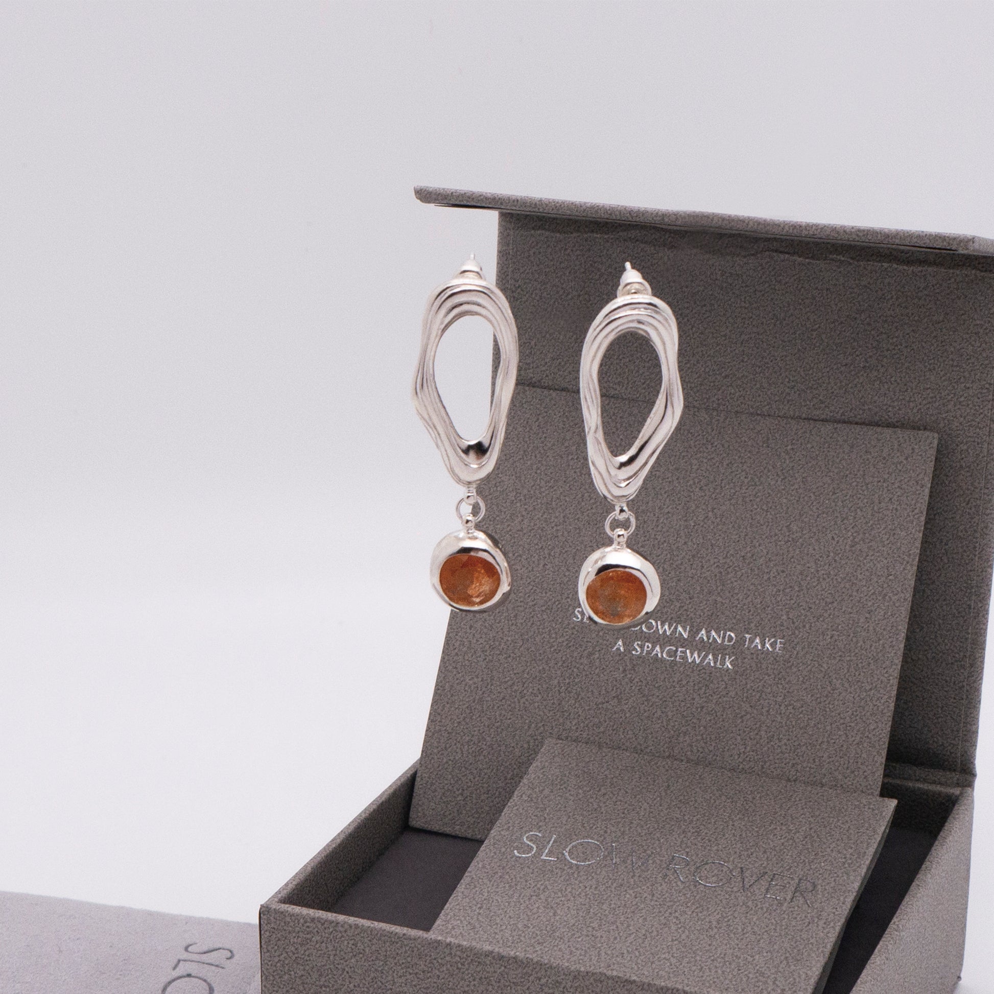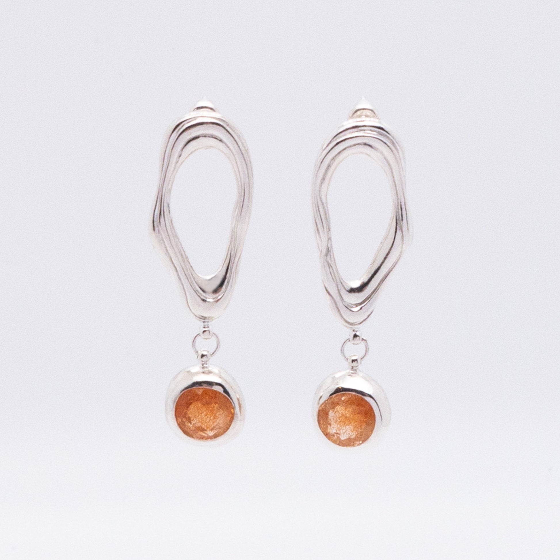 サンフラッシュフレイムレインオパールイヤリング - スターリングシルバー